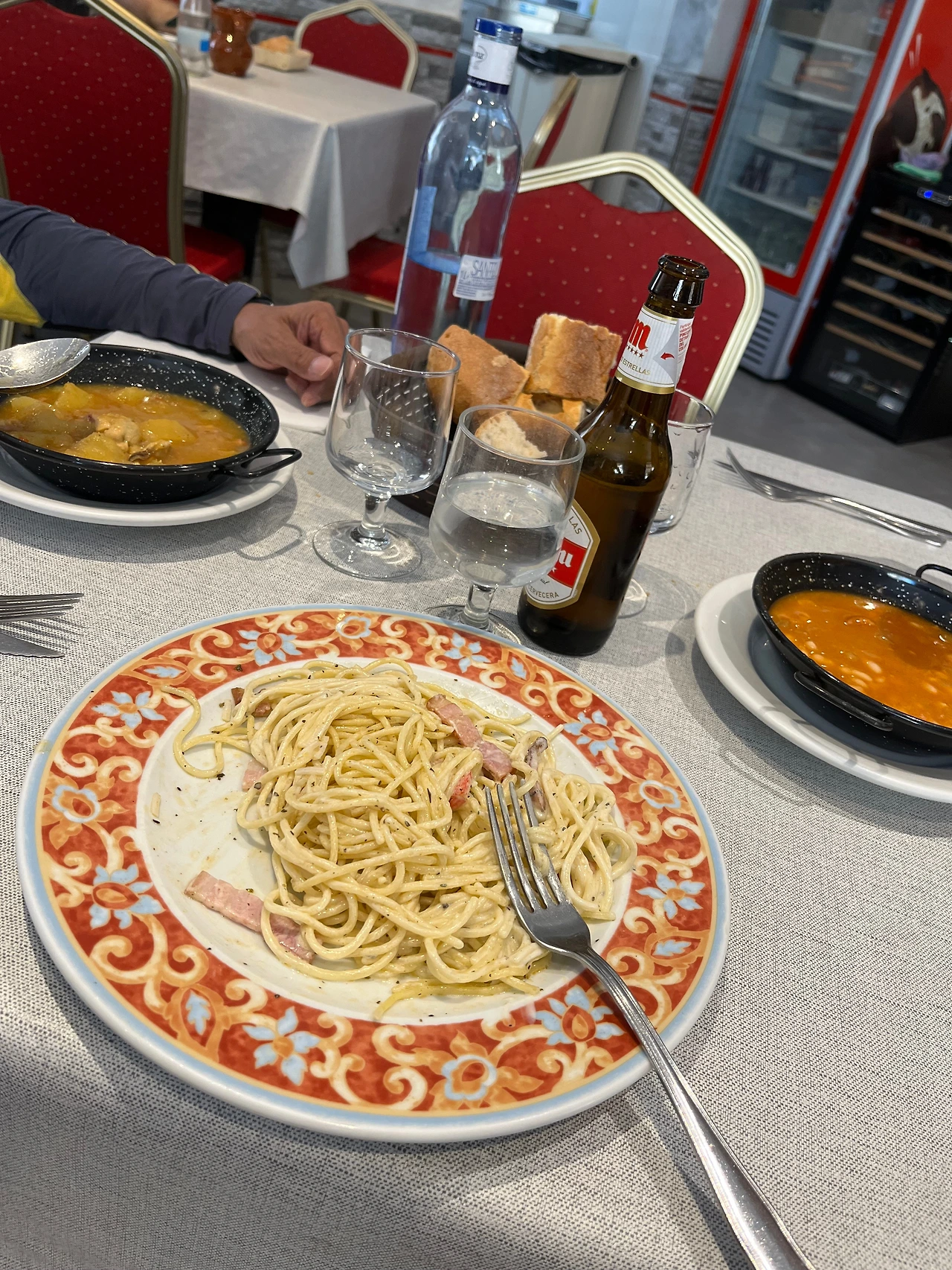 까리온에서는 수녀님들이 운영하는 알베르게가 워낙 유명하지만 예약도 받지 않는 걸로 알고 있었다. 괜히 걸으면서 시간에 쫓기면 불안하니까 성당 근처 호스텔을 예약했다. 먼저 체크인을 하고 점심을 먹으러 나왔다. 한국어로 식사가 된다고 적혀있는 곳들도 있었다. 이제 곧 순례길에서 한국어 메뉴판도 볼 수 있지 않을까? 시원하게 맥주로 곁들어 배부르게 점심을 먹었다.