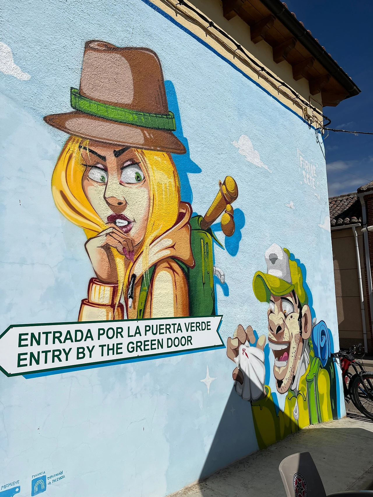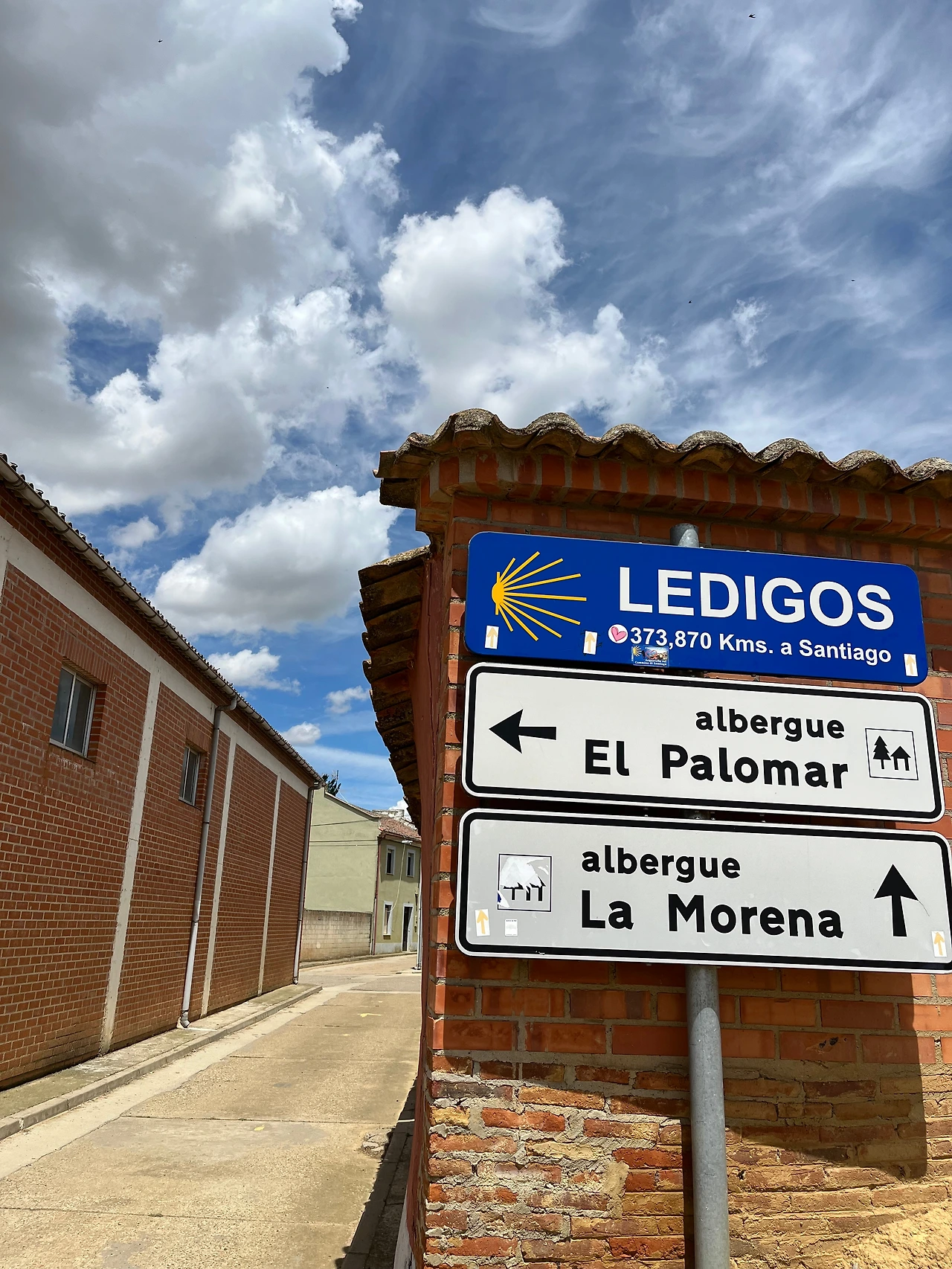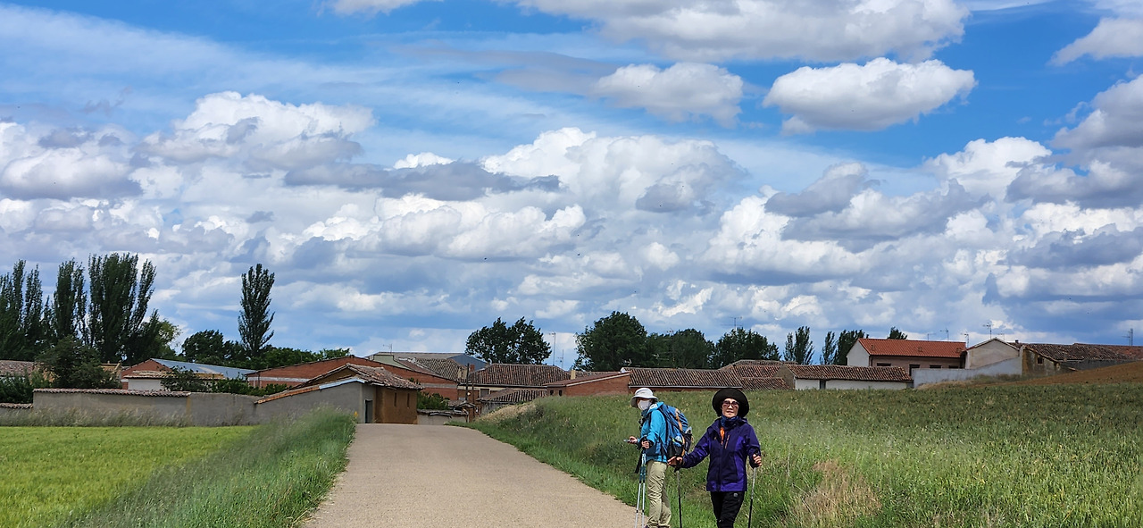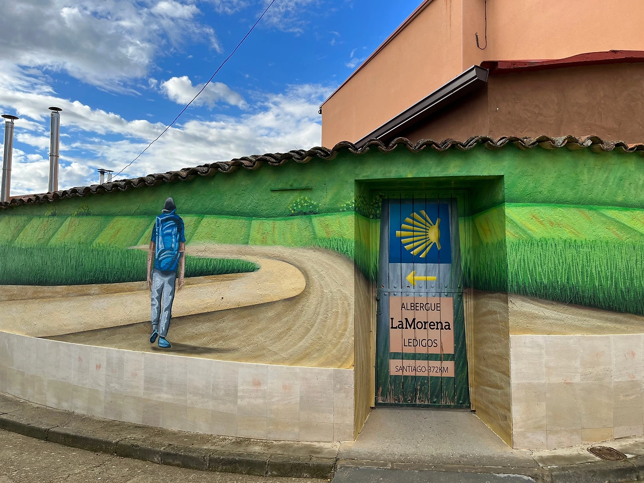 멋진 구름 사진을 많이 찍으며 레디오스에 도착했다. 오늘 우리가 묵을 알베르게 담벼락에는 예쁜 순례자 벽화가 그려져 있었다.