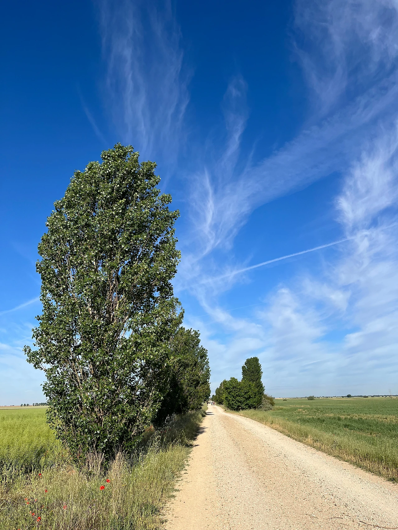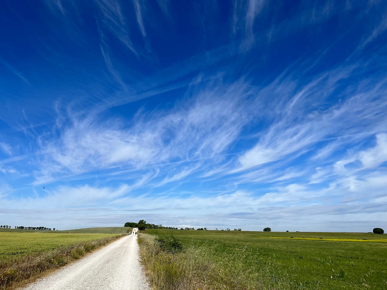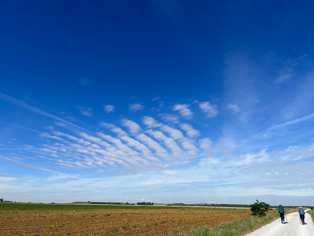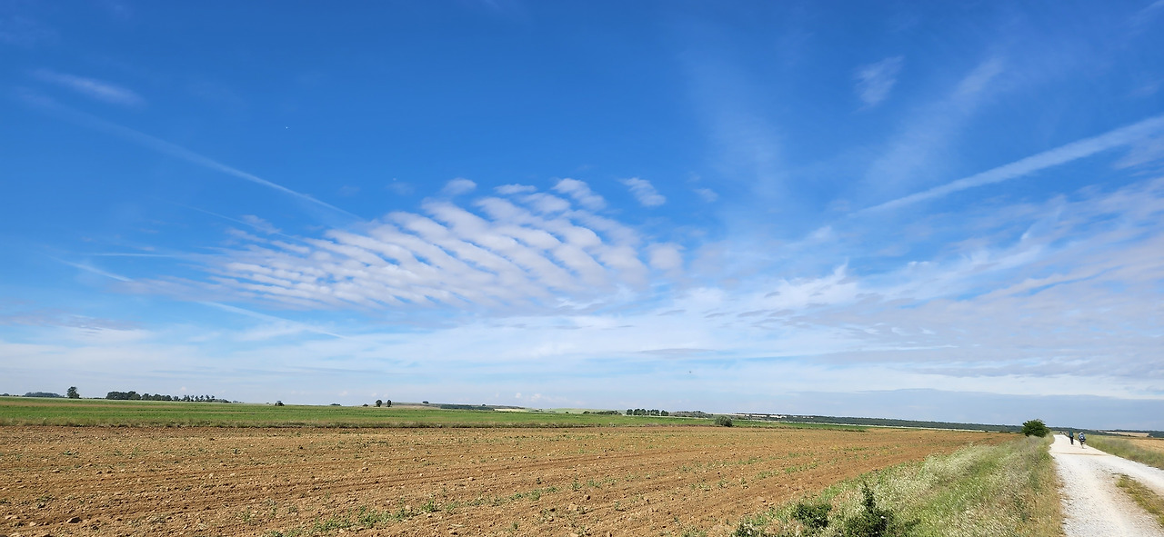 그늘 하나 없는 땡볕의 길이 이어졌다. 구름이 있었지만 해를 가릴 정도는 아니었고 깃털처럼 얇고 모양이 신기했다. 구름이 어떻게 저런 모양을 내지?