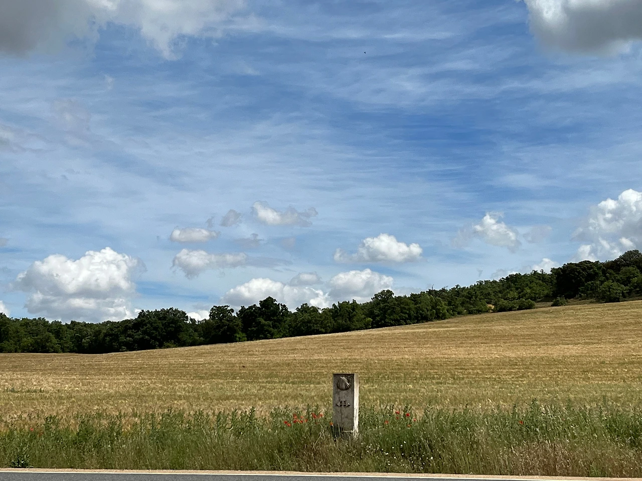 자갈이 많은 길보다 아스팔트가 편하다며 차가 오지 않는 것을 확인하고 아스팔트에서 걸었다. 우리와 같은 생각을 하는 순례자들이 생각보다 많았다. 도로는 확장을 해서 더 넓어진 듯했다. 예전에는 이런 길이 아니었던 거 같았는데. 길도 사람도 바뀌기 마련이니까. 다행히 넓어진 길이 걷기에는 더 편했다.