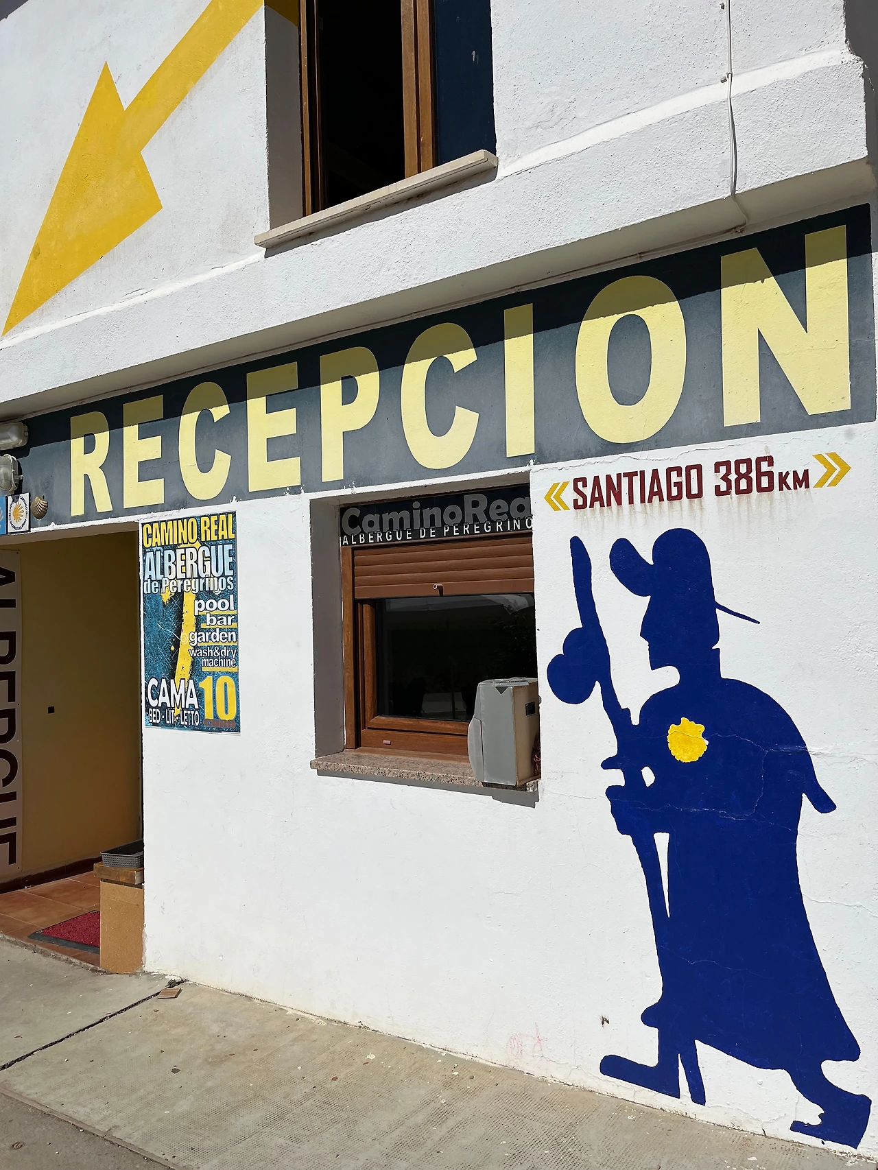 이곳 역시 알베르게와 바, 식당을 겸하는 곳이었다. 바에서 체크인을 하고 안뜰로 들어가면 알베르게가 나온다. 안뜰도 잘 꾸며져 있고 실내 인테리어도 잘 돼 있어서 기분이 좋았다. 마치 가정집을 연상시키는 인테리어였다. 그러고 보니 여기 세요도 어떤 여성분 그림이다.