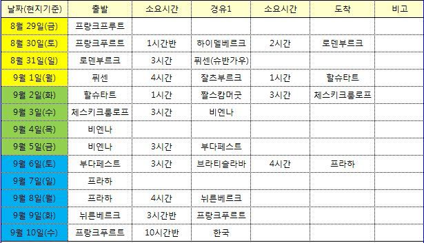 내가 여행을 준비하면서 만든 여행 엑셀 파일을 보신 회사 분들이 고개를 절레절레할 정도였으니. 그땐 나도 정말 얼마나 긴장했었던 걸까 싶지만, 첫 번째 연습을 저렇게 빡빡하게 했었기 때문에 그다음부터의 여행이 설렁설렁해도 별 무리도 긴장도 없었던 게 아닌가 싶기도 하다.