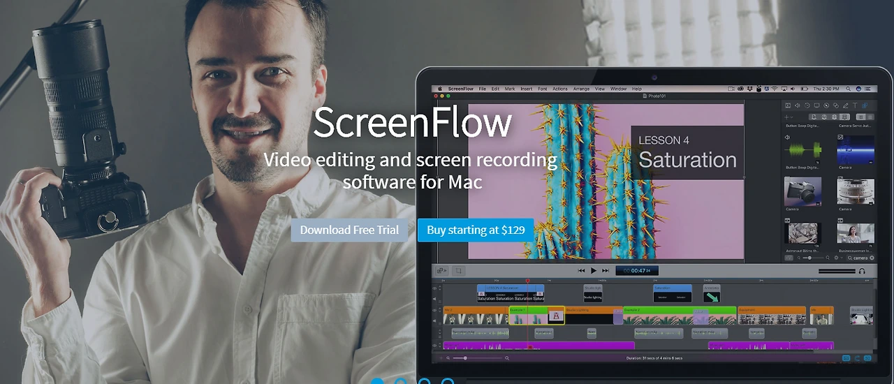 스크린캐스트는 PC의 화면을 영상으로 보여주는 것을 말합니다. 마찬가지로 PC의 화면을 캡쳐해서 이미지화한 것을 스크린샷이라고 부르듯이 말입니다. 직관적인 UI와 비전문가도 쉽게 배울 수 있는 간편함을 겸비한 Screenflow는 세계적으로 많은 사랑을 받는 스크린캐스트 소프트웨어입니다.