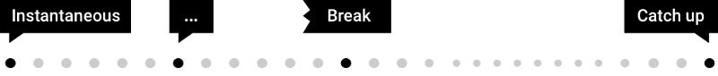 조금 생각하고 답변을 받는 경우. 상사와의 대화중 '왜 오늘은 아침에 늦었어?'라고 질문받았을 때 반드시 당신은 멋진 변명을 생각하는 데에 이 정도 시간은 걸리겠죠. 만약 대화에 타이밍 등의 행동이 관련된 경우 실제 대화 이외의 다이내믹스가 많이 추가될테지만 디지털 영역에서는 종종 전해지지 않는 경우가 많습니다.