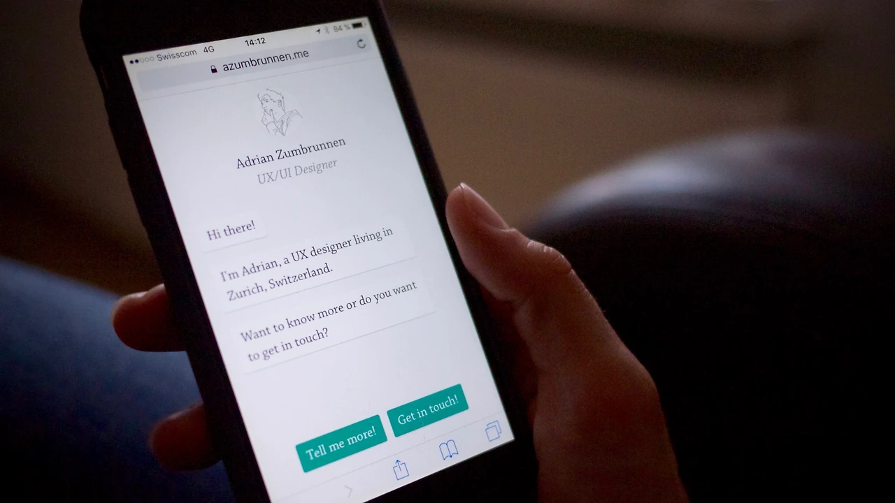 그래서 저는 손쉬운 실험을 진행하는 것으로 이 막연한 두려움에 맞설 것을 결심했습니다. 제 웹사이트를 '대화형 웹사이트'로 개선하는 것입니다. 실제 사이트는 여기서 볼 수 있습니다.