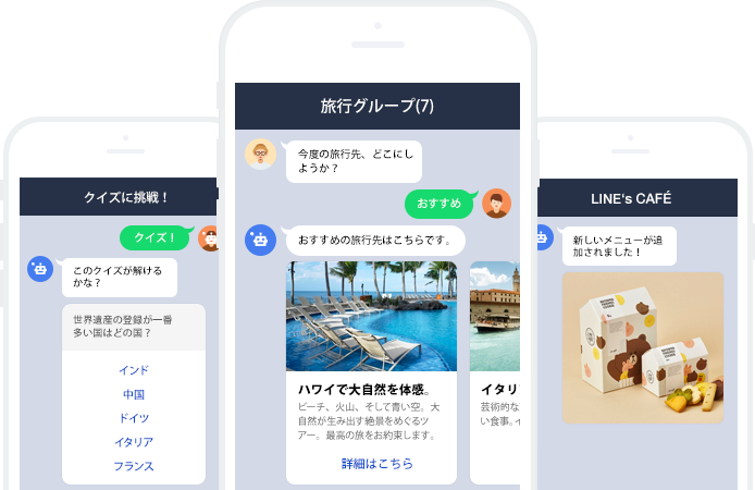 라인은 지난 4월 7일부터 누구나 라인을 통해 챗봇을 개발할 수 있는 LINE BOT API Trial Account를 무료로 제공해오고 있었습니다. 이번에 일반 공개되는 새로운 Messaging API에서는 크게 세 가지의 응답 기능을 제공하게 됩니다.
