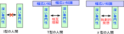 허나 풀 스택 디자이너로 일하기 위해 모든 역할을 세세하게 담당해야 하는 것은 아닙니다. 영어로 보통 유니콘이라 하면 디자인과 개발 모두 뛰어난 사람을 의미합니다. 하지만 이러한 사람은 매우 매우 드물며 풀 스택 디자이너가 이러한 사람을 가리키지는 않습니다. 제가 바라보는 풀 스택 디자이너란, "어느 하나의 특화된 분야를 지니고 있으며, 그 외에 여러 분야에 걸쳐 평균적인 능력을 지니는 사람"이라 생각합니다. 흔히 말해 파이형 인재라고 하죠. 하나의 전문적인 분야가 있고 나머지 고르면서도 뛰어난 지식과 능력을 보유하고 있는 사람인데, 이 능력이란 시장에 출시할 수 있을 정도의 퀄리티를 나타냅니다. 풀 스택 디자이너는 제너럴 리스트이자 스페셜리스트입니다.