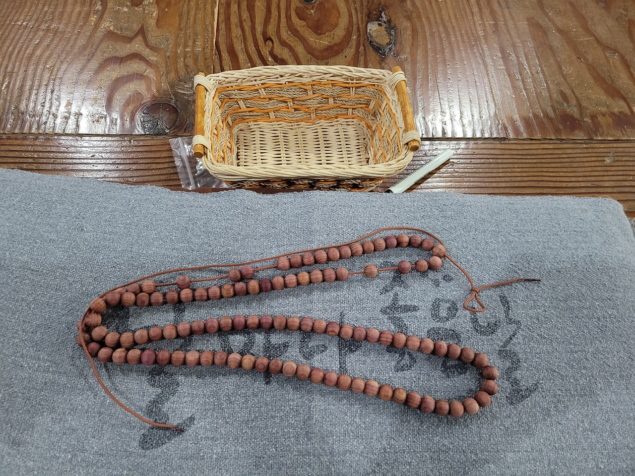 108개의 염주를 꿰면서 108배를 하는 시간이라 낱알의 꿰어지지 않은 염주알들과 방석이 나를 기다리고 있었다.