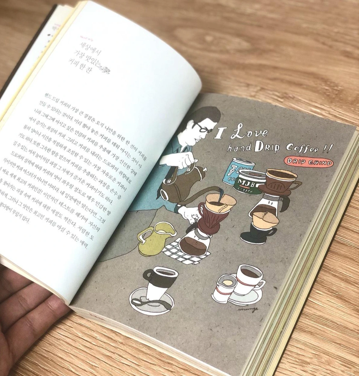 한 시간을 알차게 때울만한 책을 찾던 중, 정말 아무 생각 없이 책을 하나 집어 들었다. 그림이 유독 많이 그려져 있는 커피 책이었다.