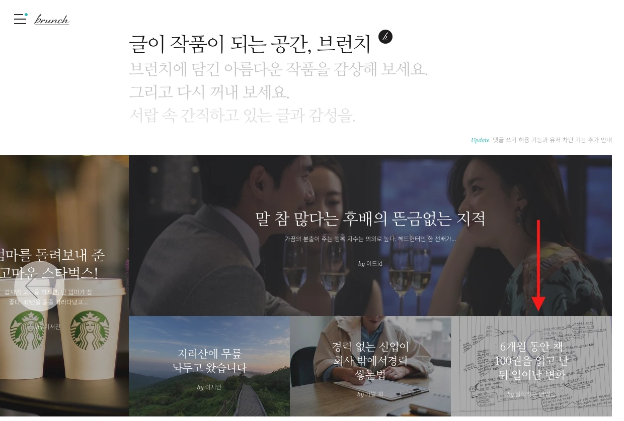 인기 브런치로 만들어줬던 그 글은 브런치 메인글을 노리고 쓴 글이 아니다. 사실 그럴 능력도 아직 안된다. 다만 그 글이 인기를 얻은 것을 보고, '아~ 사람들은 진심을 알아주는구나'를 느꼈다.
