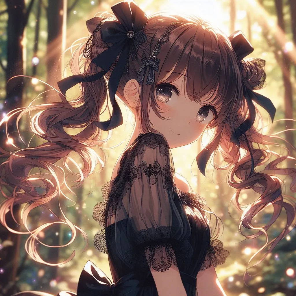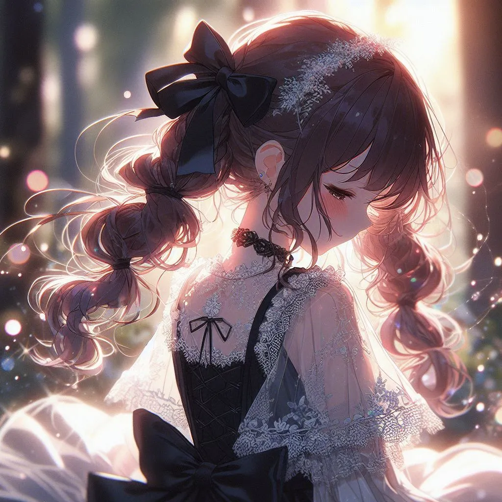많은 레이스와 리본, 양갈래 땋은 머리, 곱슬머리
