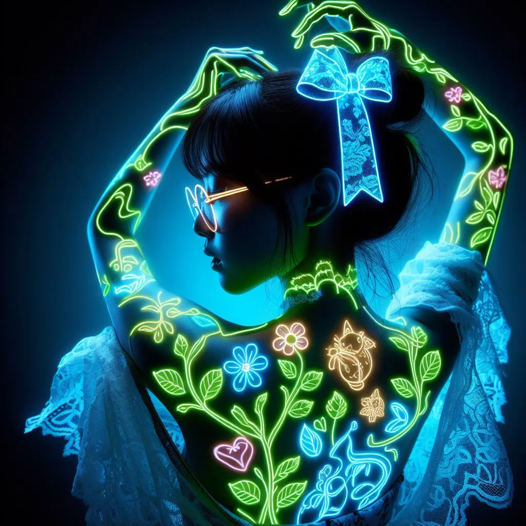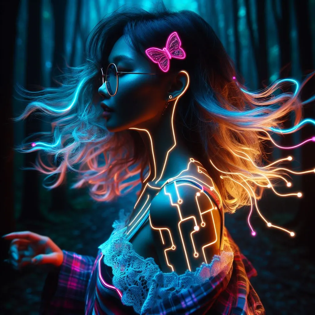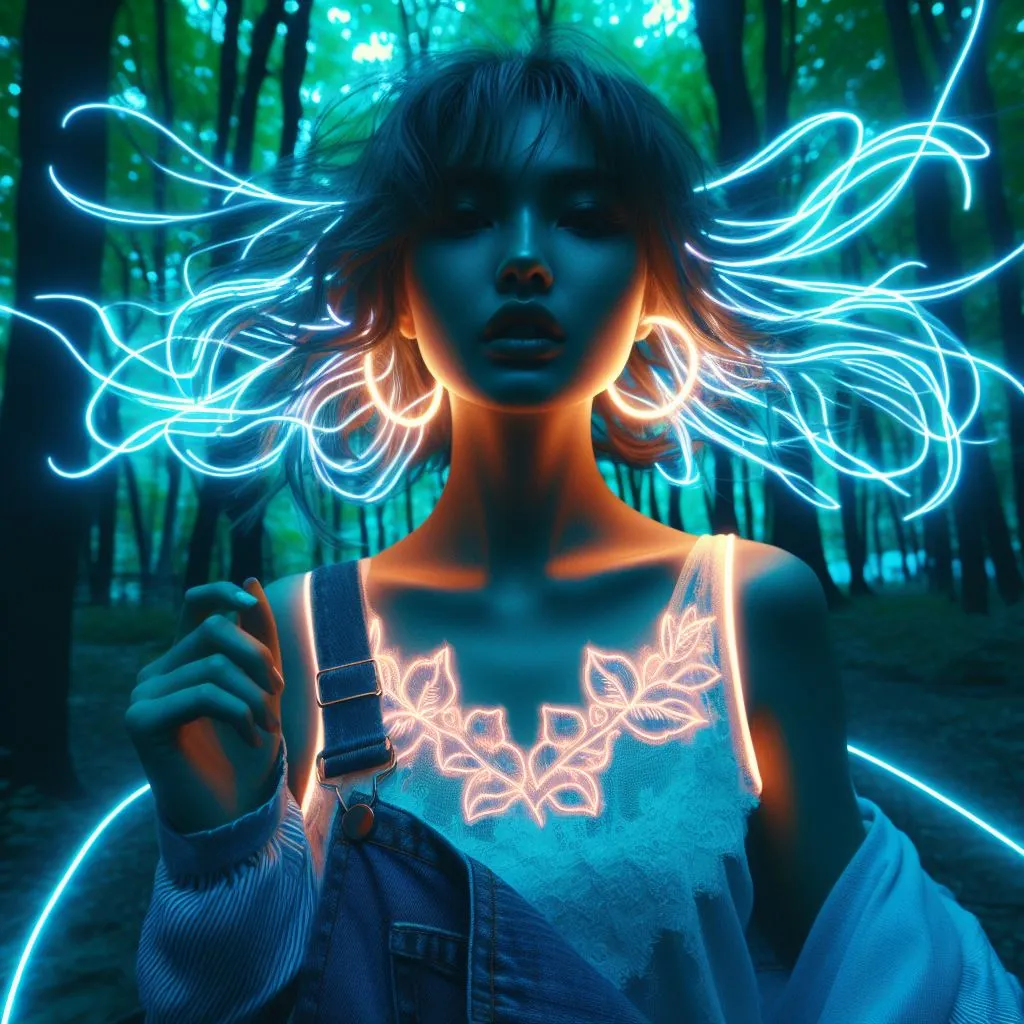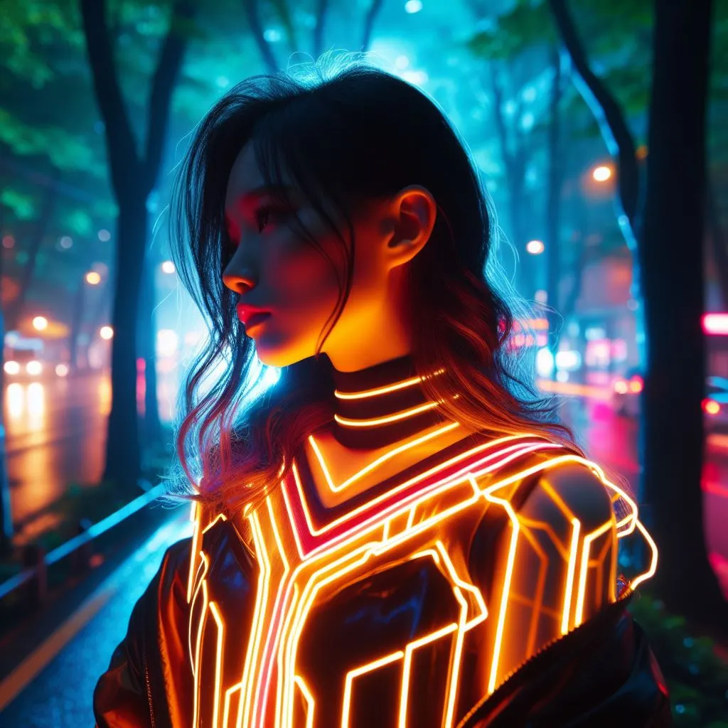 아래는 사람의 윤곽선을 네온으로 한 스타일인것 같다. 프롬프트를 조금씩 수정해서 여러 이미지들을 생성(클릭)하기때문에 매 이미지의 정확한 프롬프트를 기억하기 힘들다.