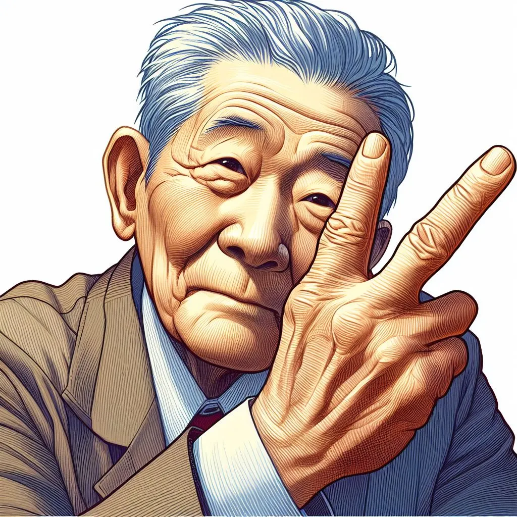 구부러진 브이에서 어르신의 우여곡절 많았던 생을 보는 듯하다