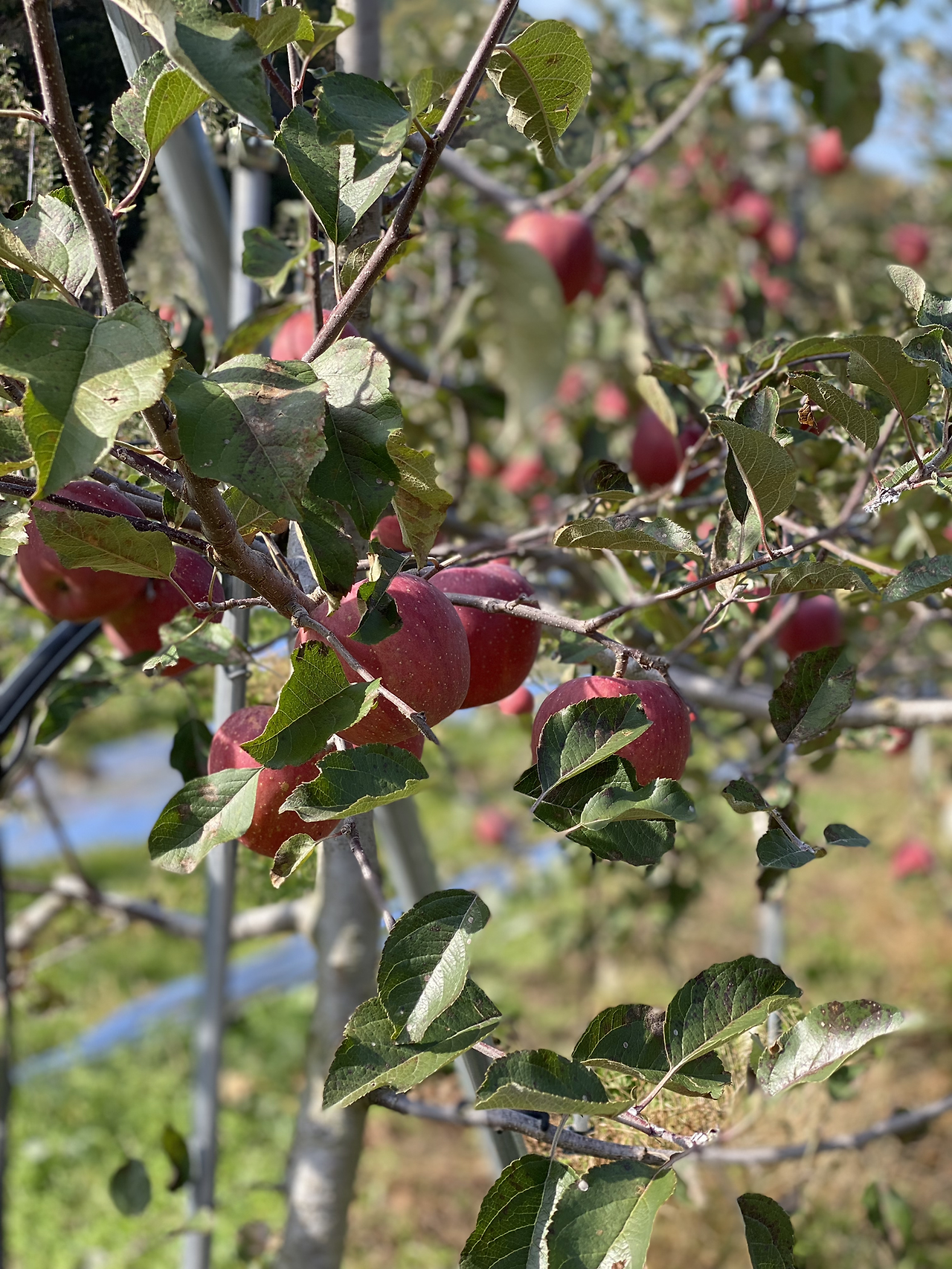 사과를 딸 때 주의할 점 두 가지가 있었다. 하나는, 사과를 잡는 손에 힘을 주면 안 된다는 거다. 힘을 주면 사과에 멍이 들어서 꼭지 부분을 살짝 잡고 따야 한다. 둘은, 꼭지가 붙은 채로 따야 한다는 거다. 꼭지가 붙어 있어야 저장기간도 길어지고 식감도 오래 유지되기 때문에 꼭지가 떨어지면 상품으로 가치가 떨어진다고 한다.