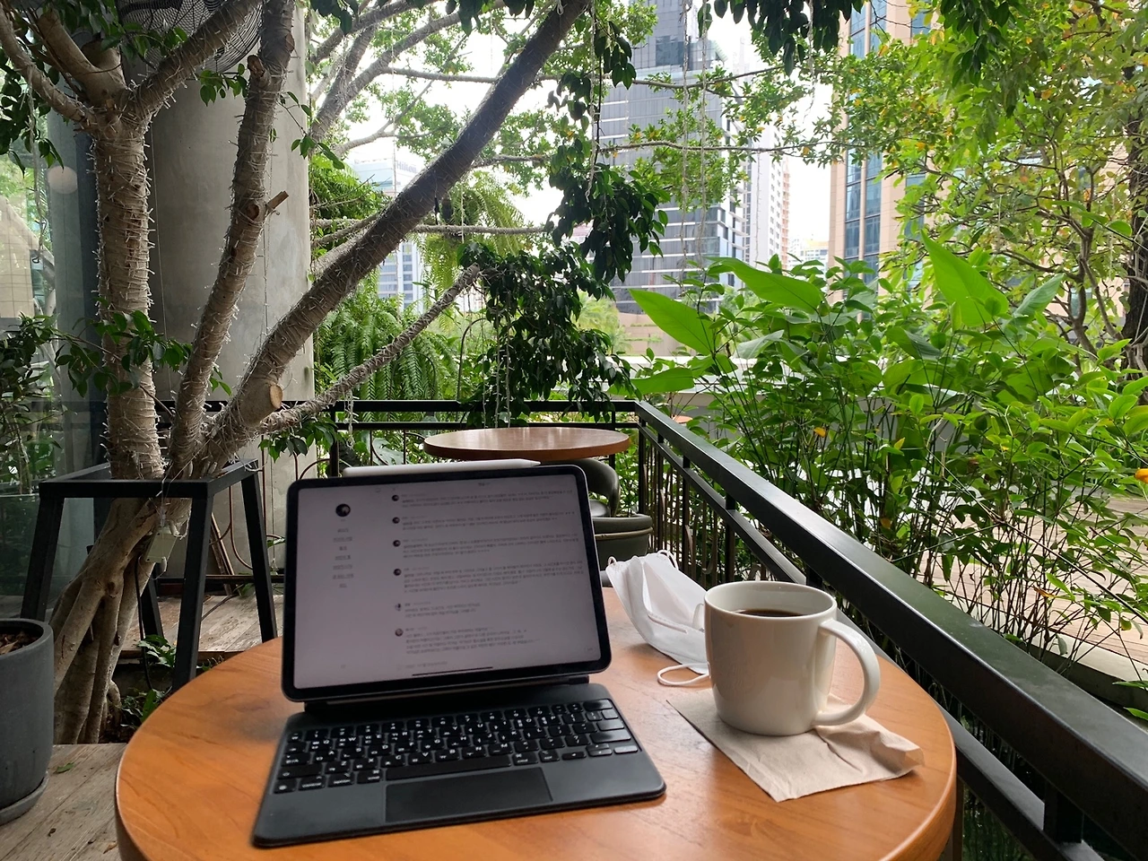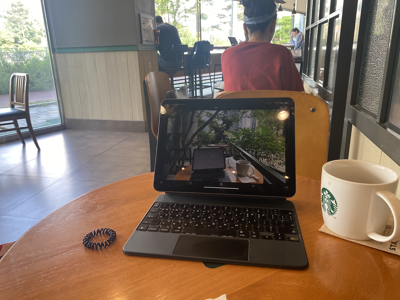 식사 후에는 카페에 가서 커피를 마시며 책을 읽는다. 카톡, 그에게서 사진이 전송됐다. 나무가 우거진 카페 사진이다. 스벅이란다. 같은 스벅인데 느낌이 많이 다르다. 다시 부러워지기 시작한다. 부러움은 잠시. 우리는 지금 무엇을 하는지. 저녁에는 뭘 먹을 것인지 같은 사소한 일상의 대화를 나눈다. 그리고 각자의 글쓰기를 응원하며 대화를 마무리했다.