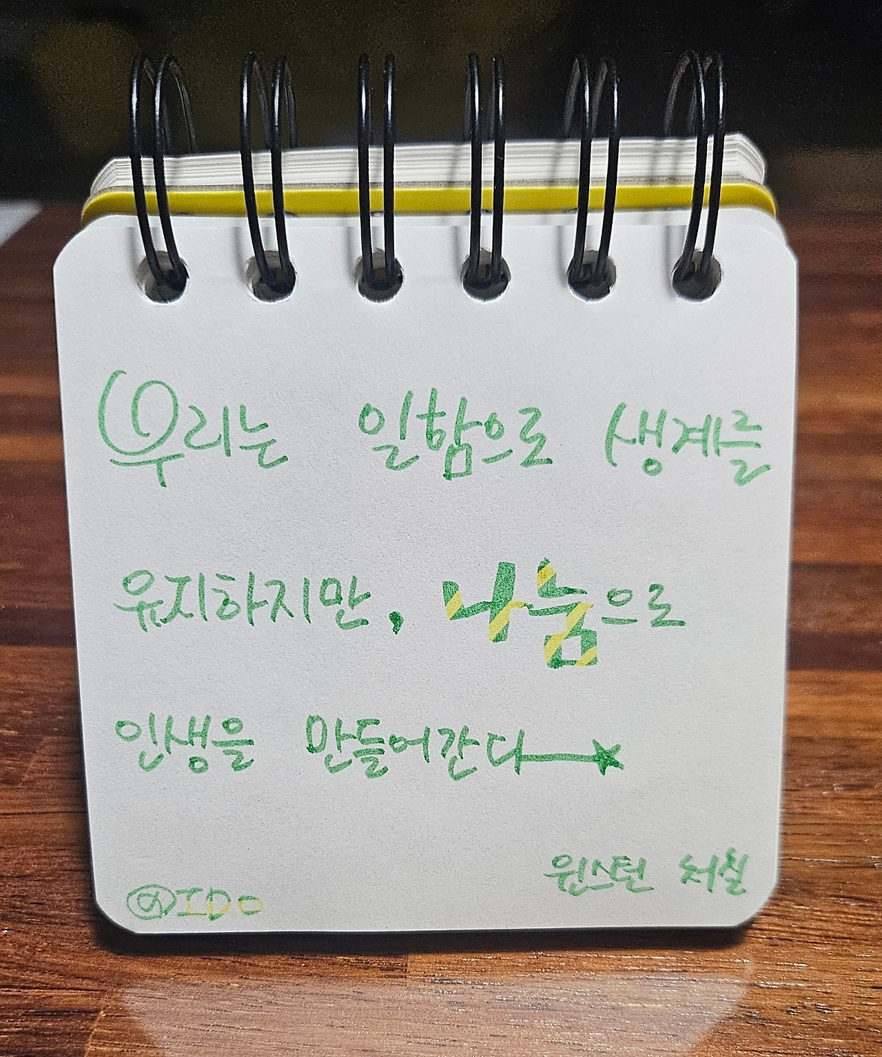 우리는 일함으로 생계를 유지하지만, 나눔으로 인생을 만들어간다.