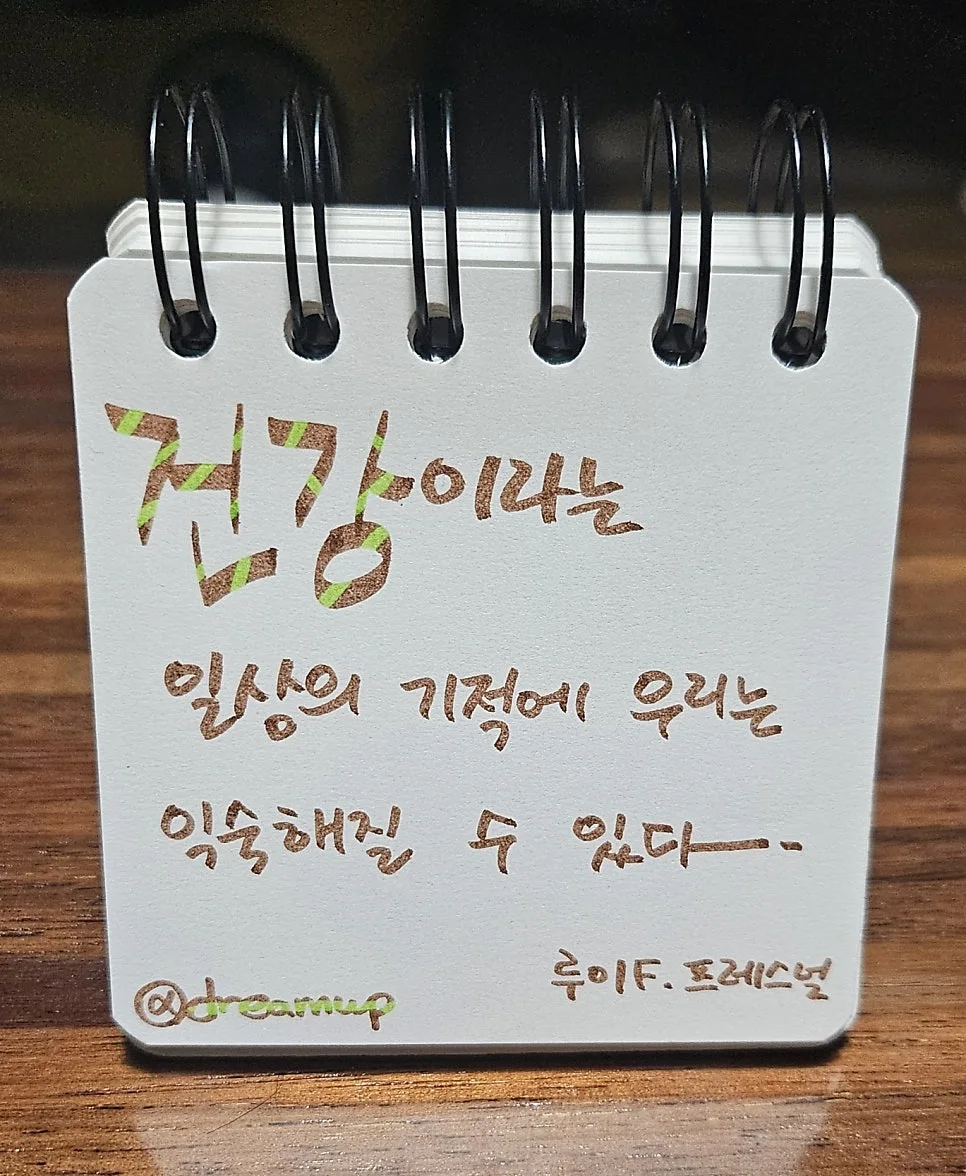 건강하게 학교를 가는 것이 당연한 것 같지만, 그렇지 않다는 것을 체감하면서 건강을 일상의 기적이라고 표현한 루이 F. 프레스널의 명언을 적어봅니다.