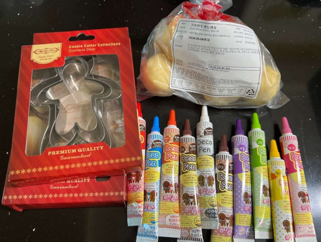 어떻게 하면 또 재미있고 가슴 벅차게 이 시기를 보낼 수 있을까? 집에서도 사부작대며 잘 노는 아이들을 데리고 밖으로 나가서 이 추위에 찬 바람을 맞고 다니기는 싫었다. 레고나 인형 갖고 노는 것 말고 특별한 것이 뭐가 있을까 생각하던 차에 문득 '요리'가 떠올랐다. 아이들과 함께하는 요리, 이번엔 쿠키 만들기에 도전해 보면 어떨까 싶었다. 그렇다고 부엌을 난장판으로 만들 수는 없었다. 손쉽게 할 수 있는 방법을 곧바로 검색해 보니 역시 해결책이 바로 나왔다. 결제만 하면 발효까지 되어 있는 반죽 덩어리를 집으로 배송해 준단다. 예쁘게 모양을 잡아줄 쿠키틀과 장식에 필요한 초코펜, 뿌리는 스프링클도 장바구니에 담았다.
