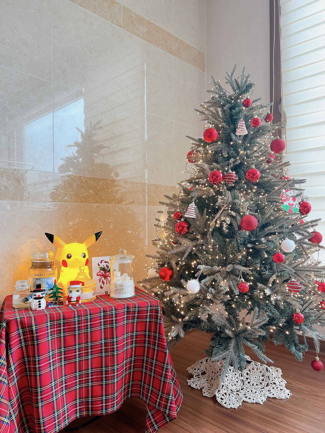 화장실 옆 애물단지처럼 놓여있는 조그마한 탁자가 생각났다. 그 탁자를 트리 옆으로 옮겨보면 어떨까? 곧바로 옮겼다. 나의 행동에 깐깐한 남편이 느낌 있다고 심사평을 해준다. 탄력이 붙은 나는 부엌 장식장으로 향했다. 역시 애물단지처럼 장식장 안에 갇혀있는 향초들을 구출하여 탁자 위에 올려놓았다. 생각이 갑자기 활개를 치기 시작한다. 예쁜 거실 한편이 머릿속에 그려진다. 탁자 덮개도 있으면 하고, 티브이 위 벽도 가랜드로 장식했으면 싶다. 빨간 트리 장식과 어울리는 식탁보를 주문하고, 크리스마스 문구 가랜드와 루돌프 가랜드도 바로 주문! 언제부터 집 장식에 관심 있었나 싶다. 예쁜 걸 보니 다른 예쁜 것도 생각나고, 집구석이 볼만 해지니, 어울리게 꾸미고 싶은 욕심이 샘솟는다.