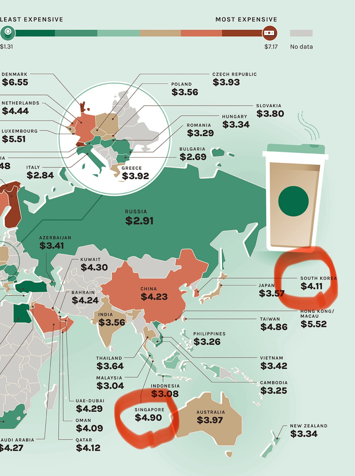 스타벅스는 어떨까, 역시 비싸다. 스타벅스 아메리카노 가격비교표에서 세계 상위권을 차지하고 있는 우리나라보다 높은 가격이다.