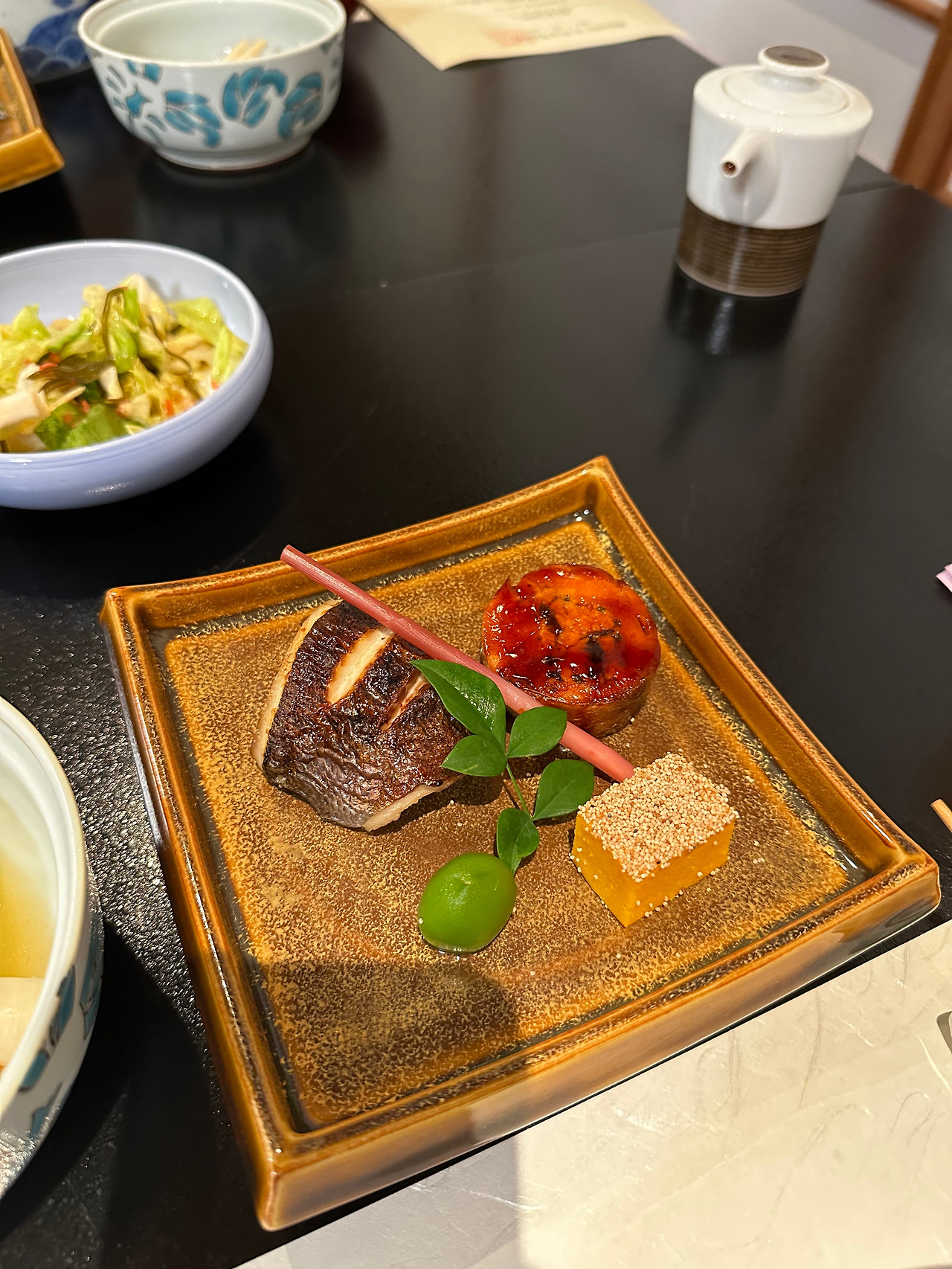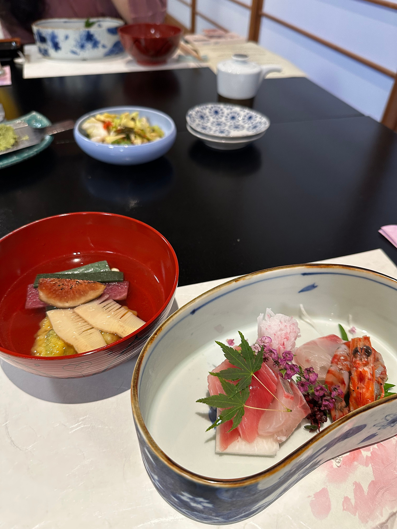 흐르는 물줄기와 빨간 펜스가 반겨주는 이곳은 슈젠지다. 사진에는 사분면으로 구름, 다리, 건물, 하늘이 담겨있다. 찰나에 포착한 스펙트럼. 오후 5시가 넘었고 서둘러 숙소로 향했다. 아라이 료칸은 저녁 6시까지 체크인을 하지 않으면 석식을 주지 않는다. 그럴 수는 없다. 꽤나 비싼 숙박료에는 두 끼의 식사가 포함되어 있었다. 그중 절반을 날린다는 건 얼마나 아찔한 실수인가. 드르륵 캐리어를 끌며 재촉한 발걸음으로 겨우 시간 내에 들어갔다. 헐레벌떡했던 마음을 표현하기 위해 다음 사진으로 가이세키 정식을 골랐다.