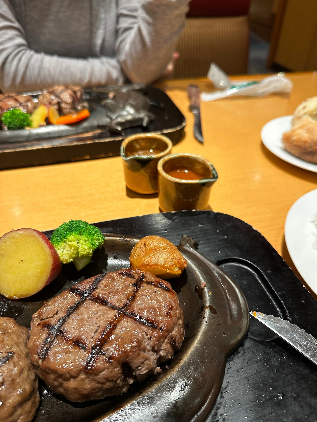 코인라커가 주는 만원의 행복 덕분에 한 시간 넘게 기다려야 했던 대기 시간을 알뜰하게 보내고 사와야카 세노바점에 들어왔다. 워낙 현지에서도 유명한 탓에 대기가 압도적으로 길다. 그래도 QR코드로 연결된 홈페이지에서 대기 순번을 지속적으로 추적할 수 있다. 앞순번에 같이 비행기를 타고 넘어온 한국인들이 대부분일 것이라는 예상과는 달리 손님들의 대다수가 점심을 해결하러 온 현지인들인 게 의외였다. 사와야카 세노바점을 평가하는 리뷰에서 가장 많이 보이는 특이한 코멘트는 "소고기 스테이크를 먹는 것 같아요."였는데, 서빙하는 과정에서부터 예사롭지는 않았다. 건너편 테이블에 앉아있는 고등학생들이 음식이 나오자마자 식탁 위에 있던 테이블 종이를 턱밑까지 들고 있었는데, 처음에는 저게 뭐 하는 거지 싶었다. 그런데 이유가 있었다. 소고기 스테이크를 굽는 것 마냥 많은 기름이 사방으로 튀기 때문이다. 서빙하고 나온 함박 스테이크를 직원이 절반을 갈라 석판에 다시 뒤집어 올려주는데, 맛도, 먹는 방법도, 먹는 표정도 진짜 소고기 스테이크 같다. 대기할만한 맛집이다.