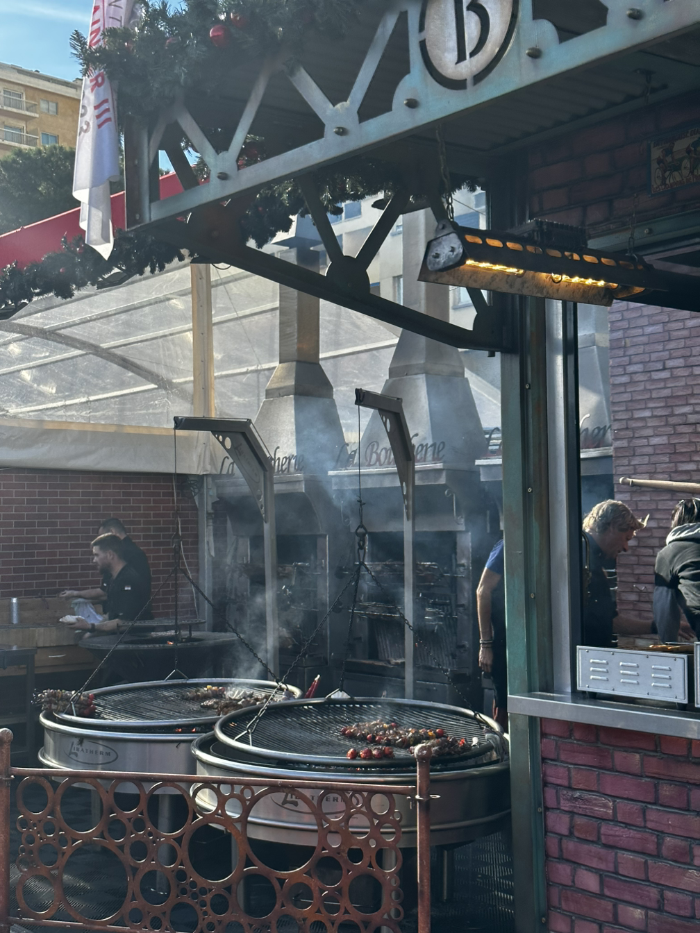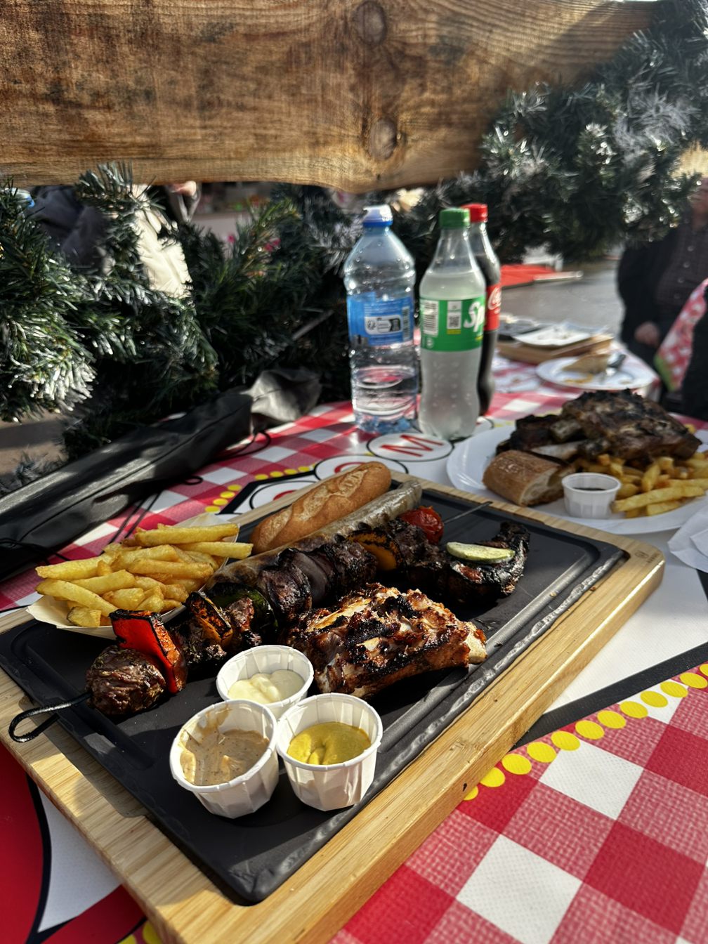 계획한 건 아니었지만, 니스에서도 그리고 모나코에서도 크리스마스 마켓을 즐겼다. 들어가고 나갈 때 짐 검사를 철저히 한다. 남부 프랑스에서는 폭탄 테러가 발생한 적이 있다. 보안 검색대를 통과하면 자유롭게 먹거리를 즐길 수 있다. 바비큐를 선택했다. 그냥 지나칠 수가 없었다. 여러 가지 세트 메뉴가 있는데, 각종 고기 종류가 있는 모둠 바비큐를 시키면 돼지, 소, 닭, 양 고기를 맛볼 수 있다. 폭립이 난리 난다. 가격은 메뉴당 20~30유로.