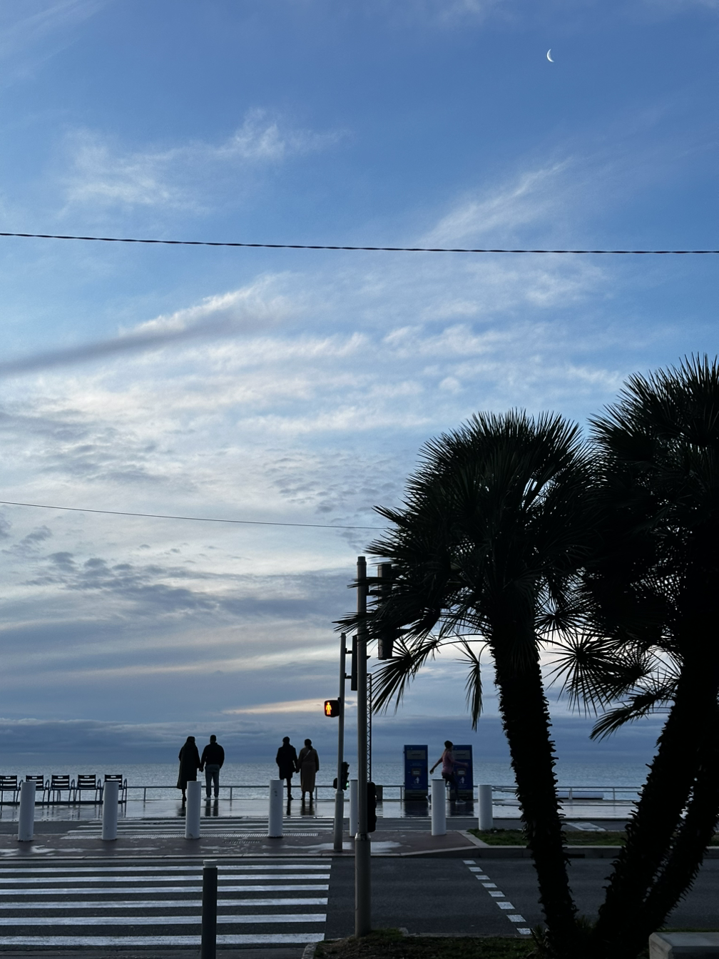 니스 해변의 아침은 이국적이다. 해변, 겨울비, 열대나무, 동양인과 서양인, 달과 태양이 파란 공간에서 한꺼번에 영역을 차지하고 있다. 아침에 담을 수 있는 거의 모든 것들이 쏟아져 나오는 시간에 산책을 나섰다. 눈부시게 아름다웠다.
