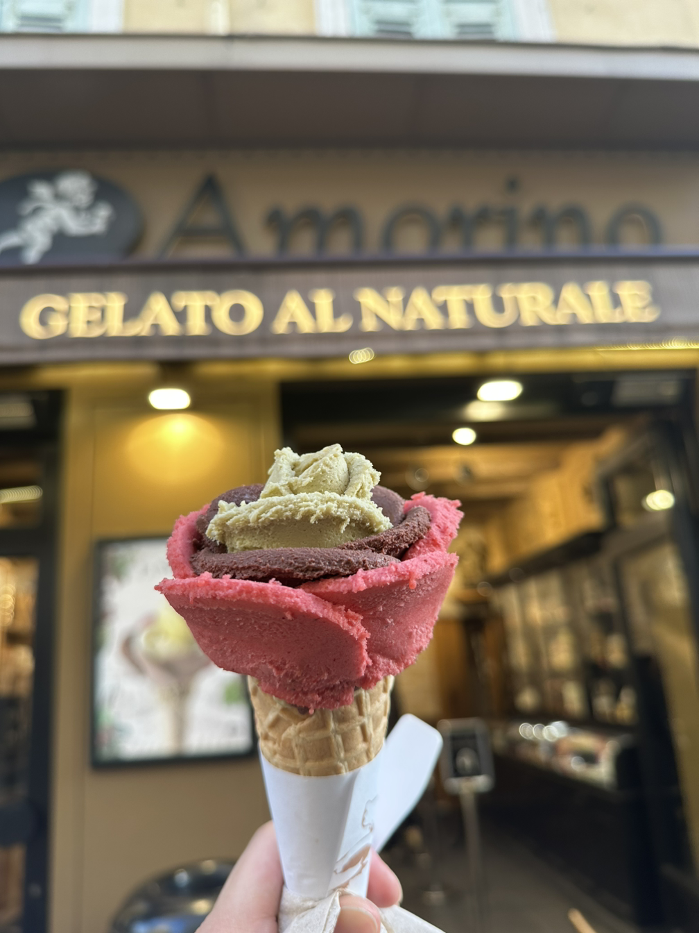 Amorino는 장미 모양으로 젤라또를 퍼주며 유명해진 아이스크림 가게다. 세 가지 맛을 고르면 먼저 말한 맛을 안쪽부터 채워준다. 맛있다. 그래도 겨울에 들고 다니면서 먹기엔 춥다. 서둘러야 했다. 해가 지기 전에 숙소로 돌아가 석양을 봐야 했다. 에어비앤비에서 그 숙소를 고른 이유 중 하나였다. 베란다에서 퇴근하는 태양 보기. 성공해서 다행이다.