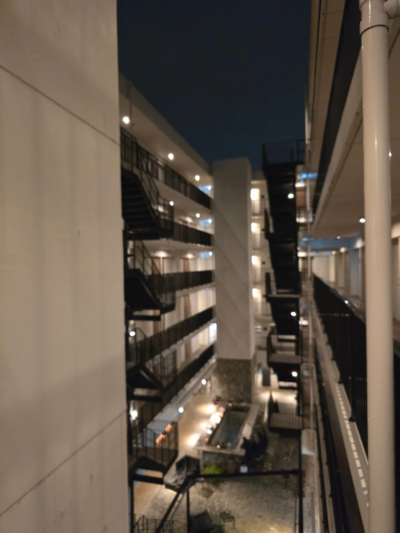 짧은 일정에 오후 출발 비행기라 첫날 호텔은 교토역과 가까워야 했다. 여행 대도시답게 역 근처 호텔 선택지는 충분하다. 그중 Sakura Terrace를 고른 이유는 힙해서다. 얼마나 힙하냐면 지붕이 없다. 기다랗고 높은 ㅁ자 형태인 호텔 건물 가운데에는 중정 같은 공간이 있는데, 모닥불과 테이블, 카우치로 채워놨다. 체크인을 하면 웰컴드링크도 주는데, 선택지에 주류가 있다. 늦은 시간에 도착하면 곧장 나마비루 주문이 가능하다. 운이 좋으면 날짜별로 마련된 재즈 공연을 즐길 수 있다. 나는 운이 좋았다.