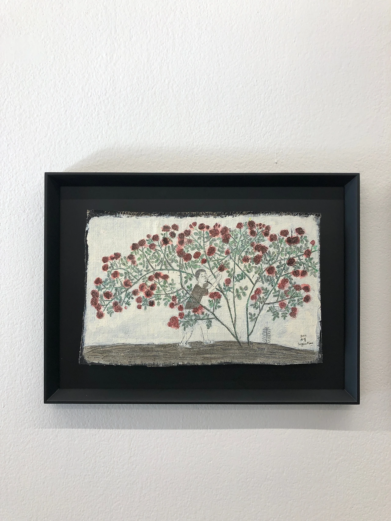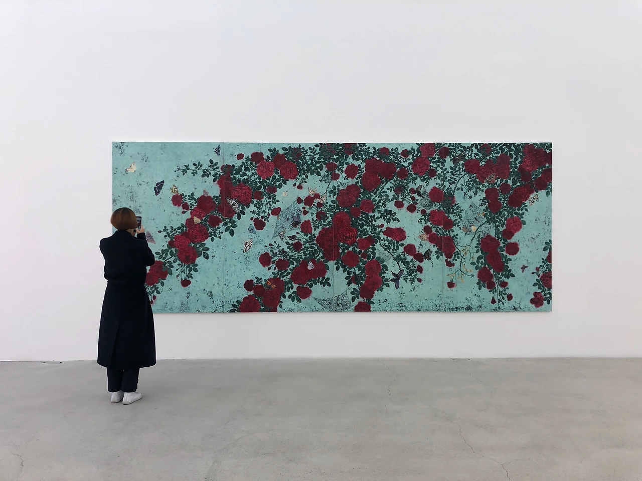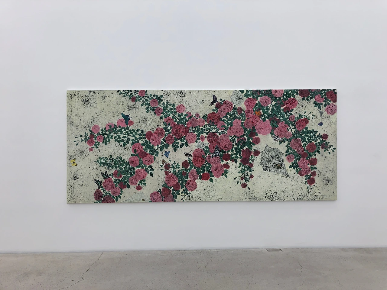 25살이란 어린 나이에 베니스 비엔날레로 이름을 떨친 그 이력은 작가의 고충 지점이었다. 고통과 부담감을 감내해야했고 그럴 수록 작가는 그림을 그리고 또 그렸다. 눈 떠 있는 시간 동안 계속 그려나갔다. 그렇게 1년이 넘은 시간이 지나서야 비로소 장미 넝쿨을 세상에 내놓을 수 있었다. 그 고독한 작품은 아이러니하게도 따스하다.