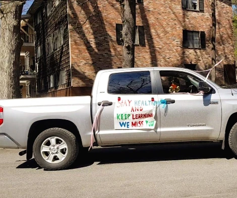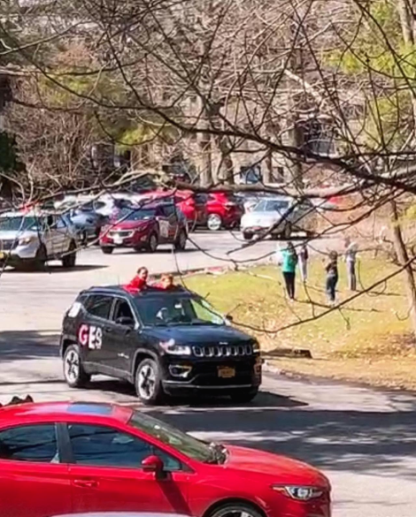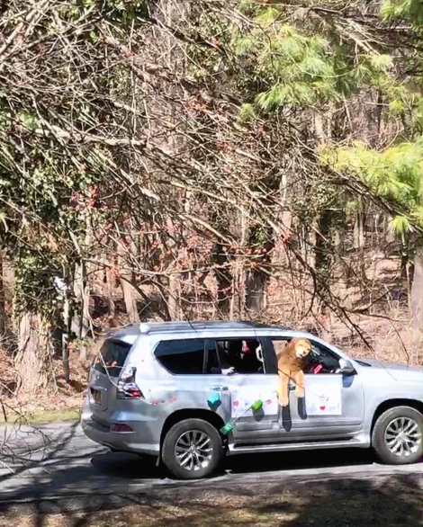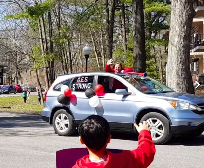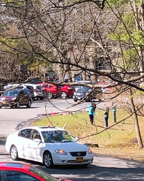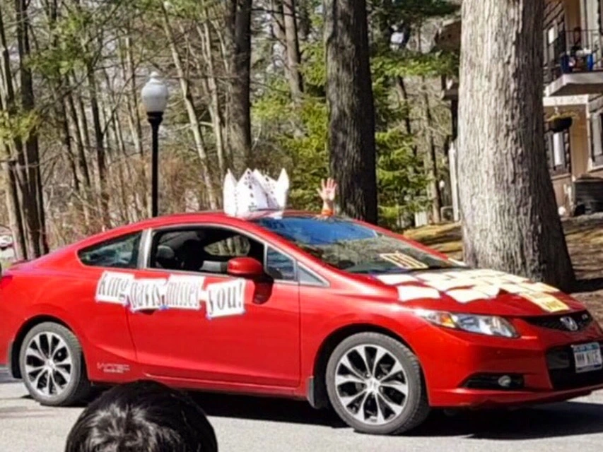 아이는 담임인 Mrs.Mirabile 차가 지나가자 피켓을 더 번쩍 들어올리며 환호했다. 선생님도 차 안에서 아이의 이름을 외치고 손키스를 날리며 격하게 화답해주었다. 뒷자리에 함께 탄 선생님의 자녀와 가족들은 가까이 오지는 못하는 아이들을 향해 길가에 꽃잎을 뿌렸고, 조수석에 앉은 곰과 공룡 인형들도 이웃들을 향해 손을 흔들었다.