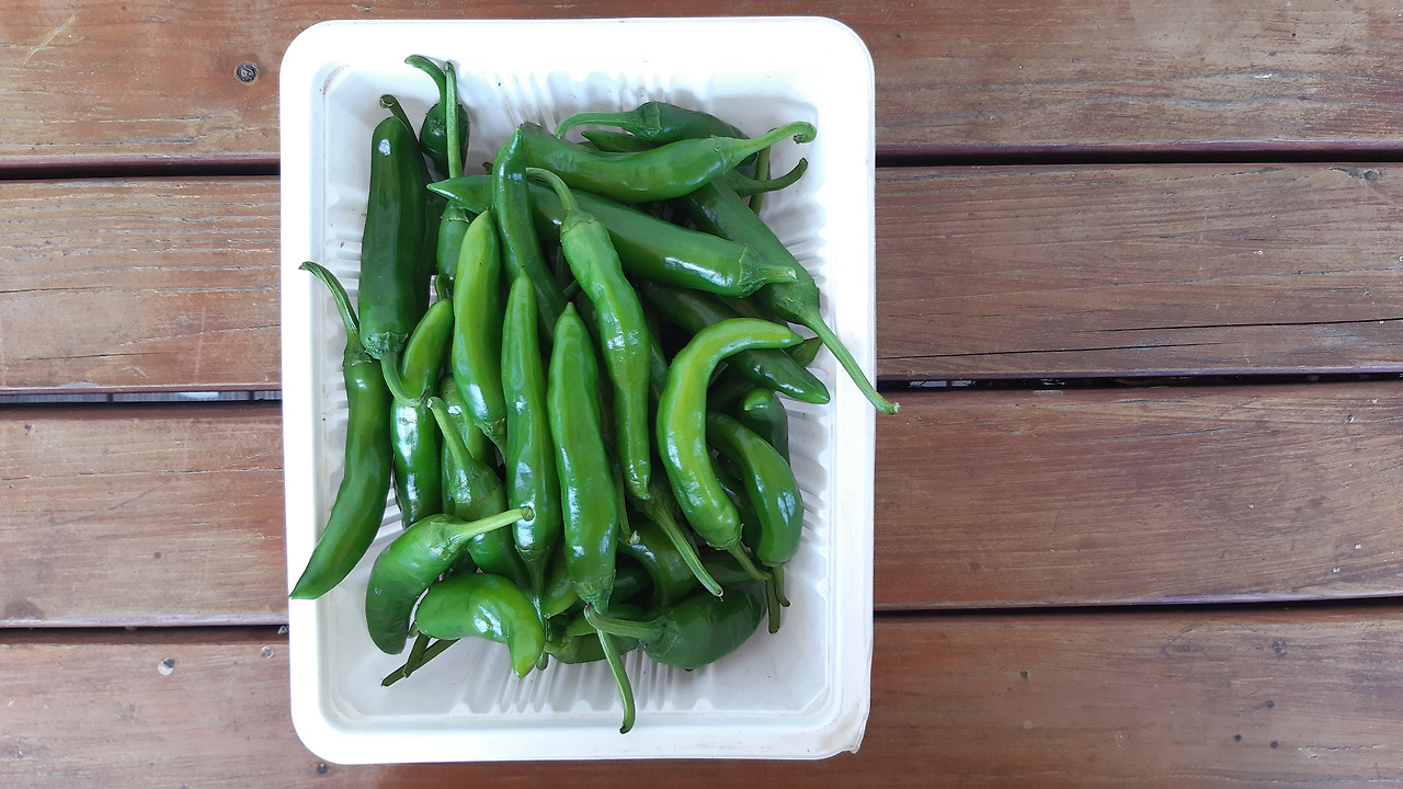 고추도 너무 약이 오르기 전에 땄다. 이것 역시 씻어서 썰어서 냉동실로 가야한다.