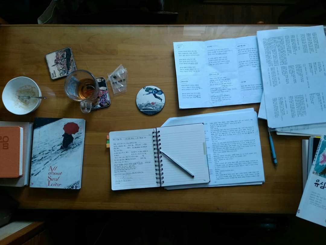 이 집으로 이사를 오면서도(사택이어서 이사 당일에야 방들을 보았다) 재빨리 스캔해서 제일 밝고 좋은 방에다 내 책상을 냉큼 들여놓았다. 아, 크기는 남편의 방이 더 크다.