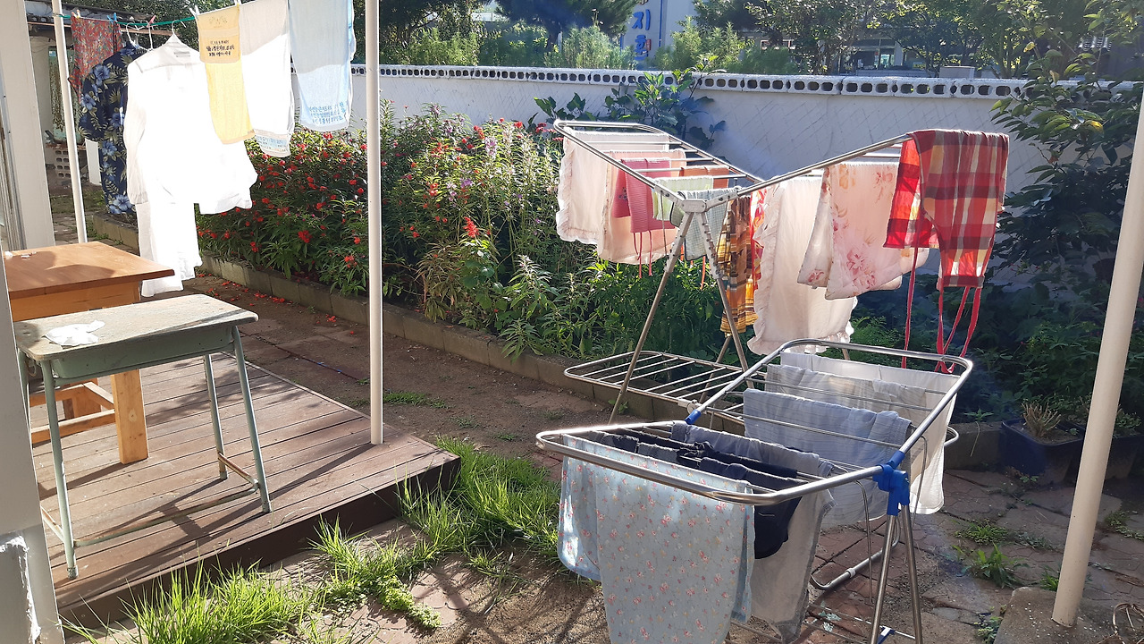 여전히 폭염 중이지만 아침에 눈을 뜨니 햇빛이 정말 좋았다. 부지런히 세탁기를 돌려 이불과 베개커버를 빨았다. 내 셔츠, 면 잠옷. 흰색이 햇빛과 섞이니 눈이 부시다.
