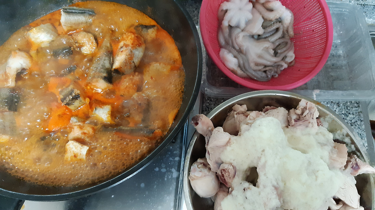 낙지 볶음, 닭 볶음탕, 코다리찜, 미역국, 두부가지멸치조림이 만들어야 할 반찬이다.