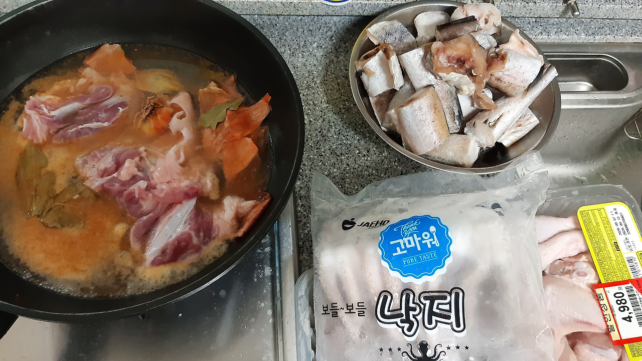 어제 밤 열무물김치를 두 통 담궜다. 어제와 오늘 오전에 장을 봐왔으니 조금 있다가 저녁준비하면서 폭풍 반찬 만들기에 돌입할 참이다. 점심 준비하면서 수육삶기. 한번 먹을 만큼 소포장 해두면 렌지에 데워먹는 정도는 남편이 할 줄 안다.