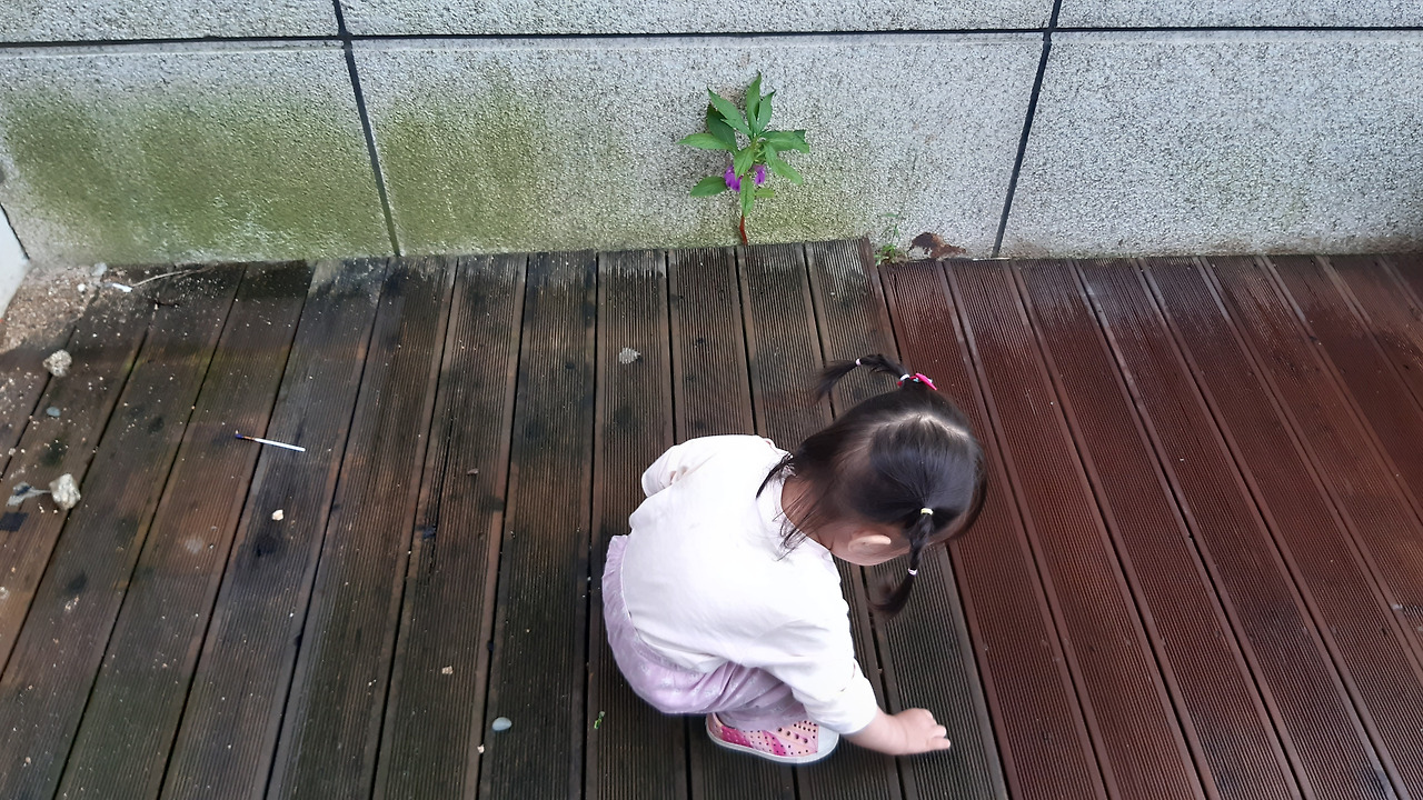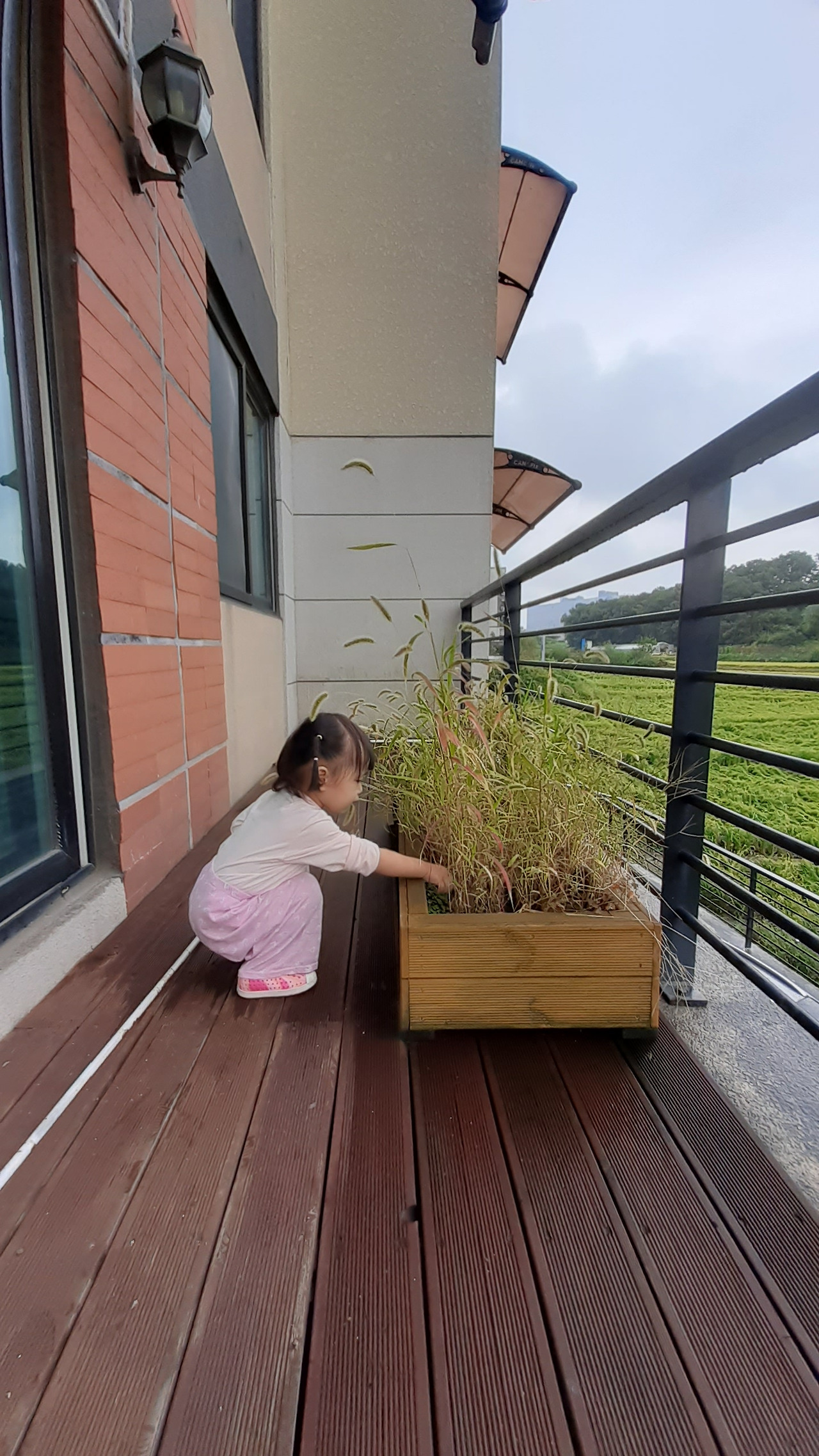 오늘, 출근 대신 집에서 일하는 엄마를 하원 후 상봉 못한 손주는 엄마가 집에 있는 줄도 모르고 모처럼 데크에서 신나게 놀고 있다.