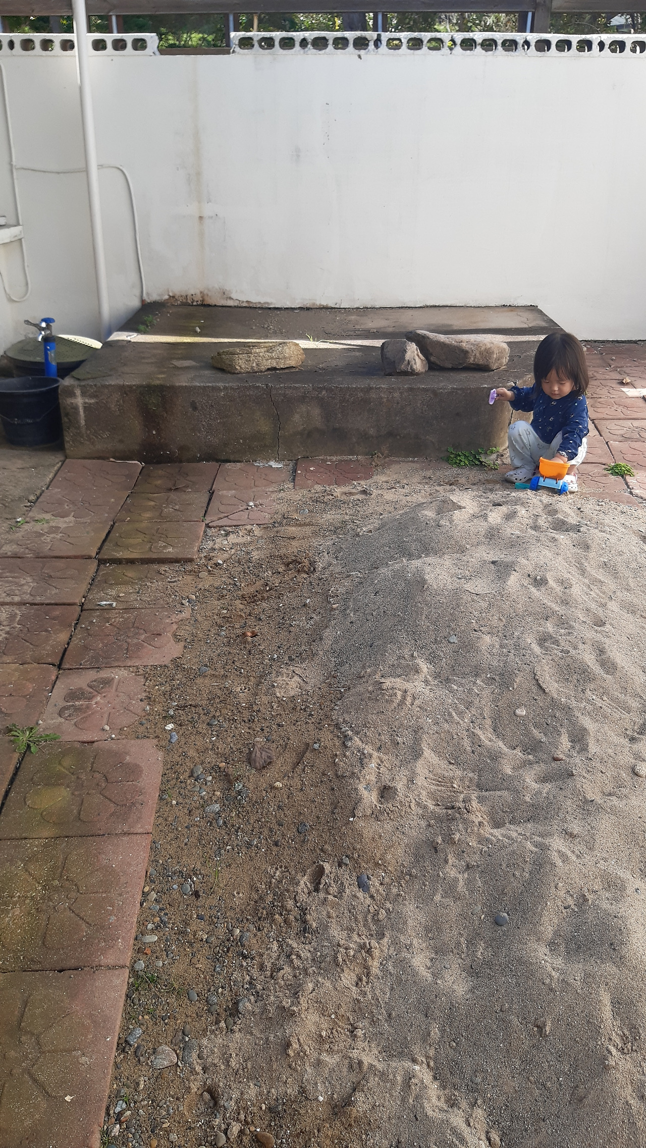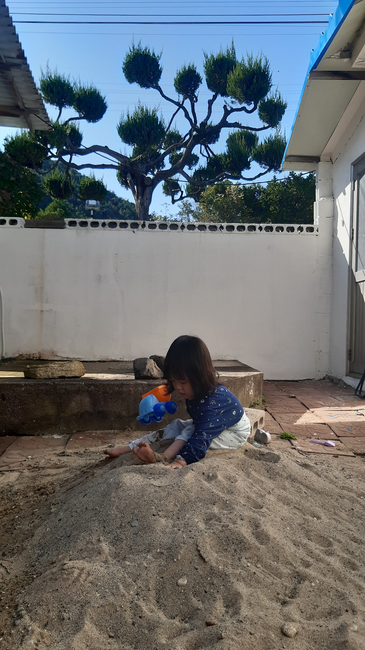 점심을 먹고 모두들 낮잠 시간, 손녀만 눈이 반짝인다. 할아버지가 마당 한 켠에 모래를 잔뜩 실어다놨다. 손주 오면 모래 장난을 하라고 할머니는 모래놀이 장난감을 사두었다.
