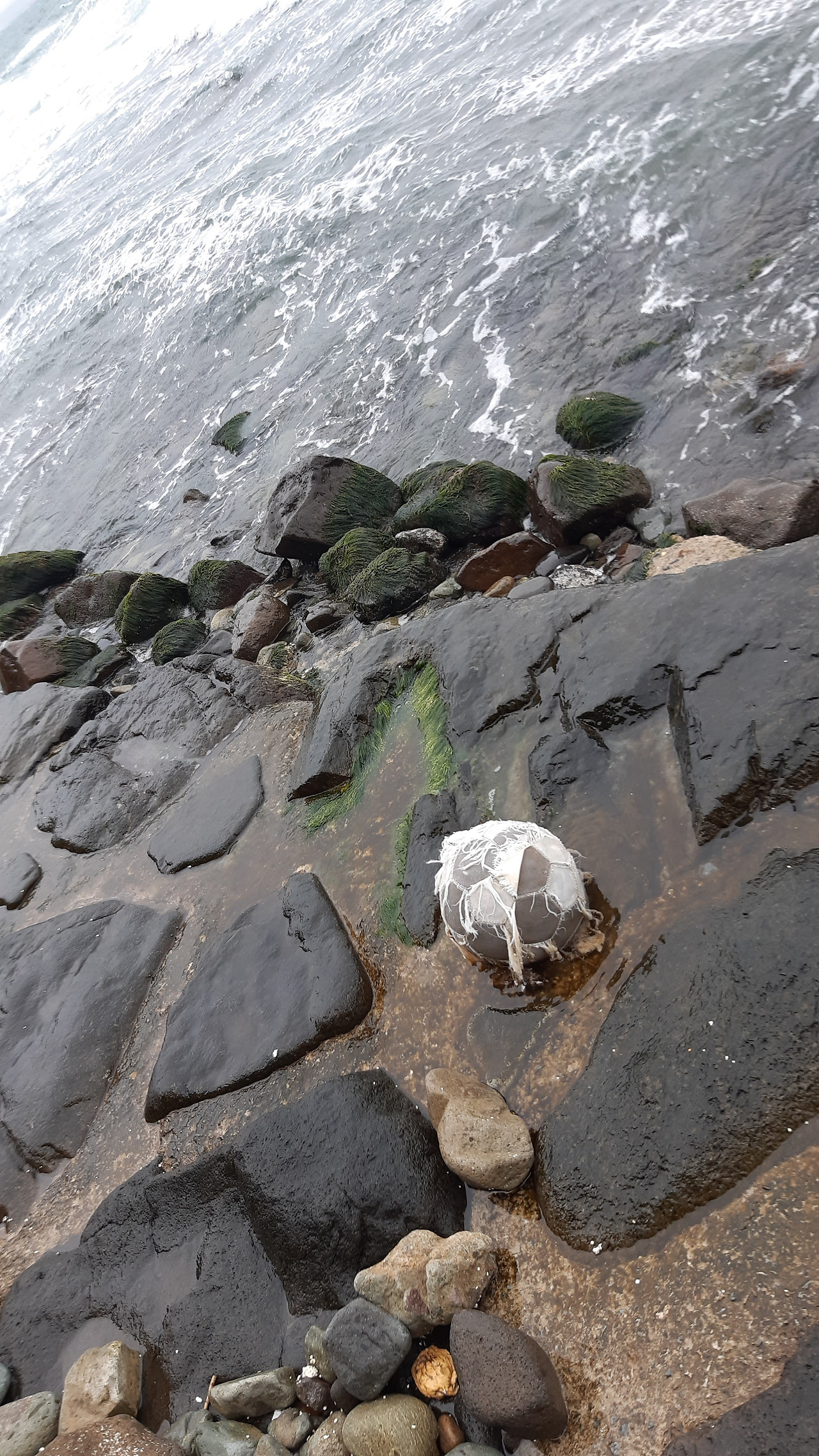파도에 밀려온 다 해진 축구공을 보니 톰 행크스가 주연한 <캐스트 어웨이>가 생각난다. 무인도에 표류한 그는 배구공에다 얼굴을 그리고 '월슨'이라는 이름을 붙여주곤 매일 말을 건다. 두려움을 희석시키고 살아있음을 느끼게 하는, 한계상황에 놓인 인간이 할 수 있는 일일 거라며 영화를 보며 생각했었다. 지나쳐 갔다가 다시 와서 사진을 찍었다 요즘은 사진도 되도록 최소한만 찍으려고 한다. 욕심을 비우기의 훈련이다. 메모리 창고에 많이 쌓아두지 말것!