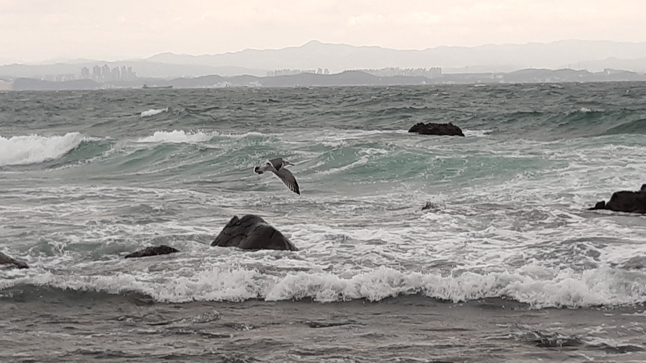 갈매기들도 그냥 앉아서 수다만 떠는 녀석들도 있었지만 거센 바람을 정면으로 맞으며 바람을 즐기는 녀석도 있었다.