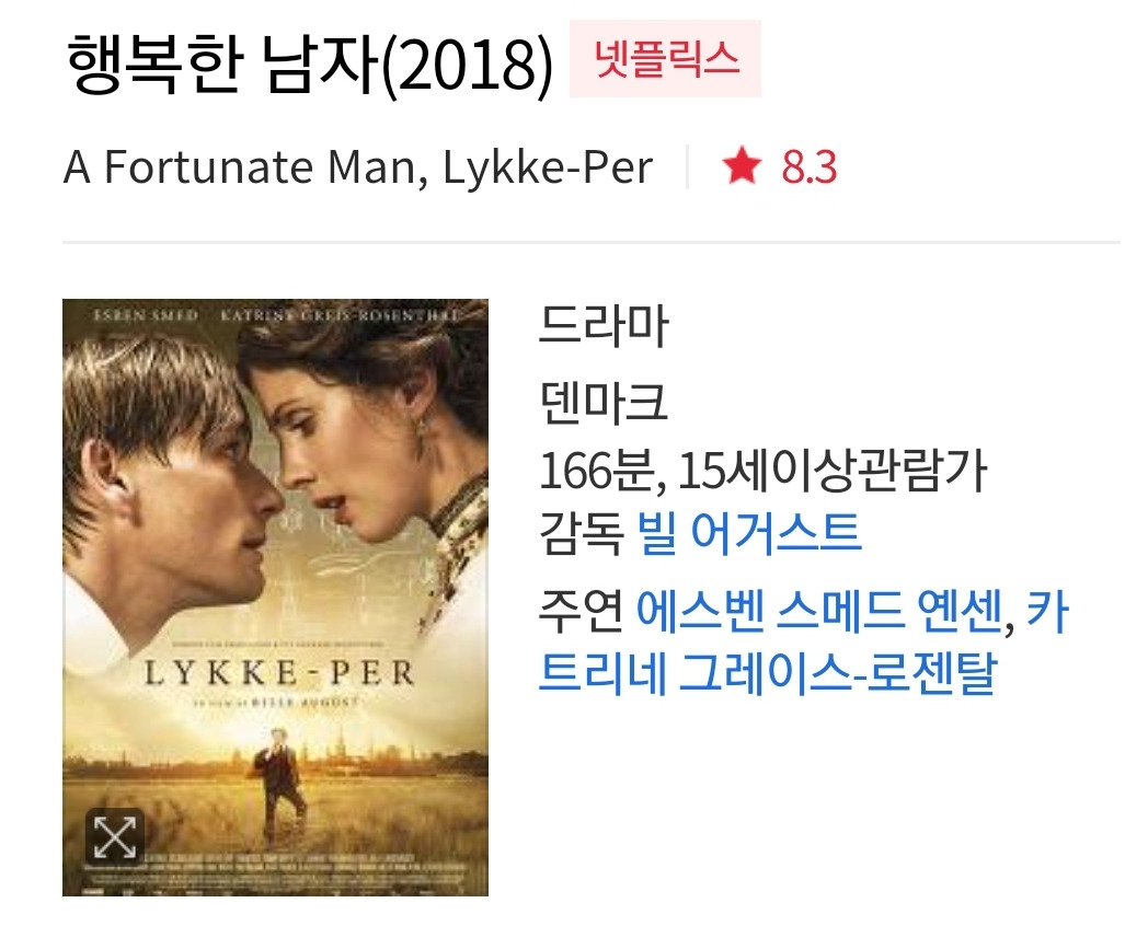 빌 어거스트 감독의 <행복한 사람>이다. '삶과 행복에 대한 통찰'이 가득한 영화라는 구절이 내 마음을 사로잡았다. 러닝타임이 2시간50분이다.