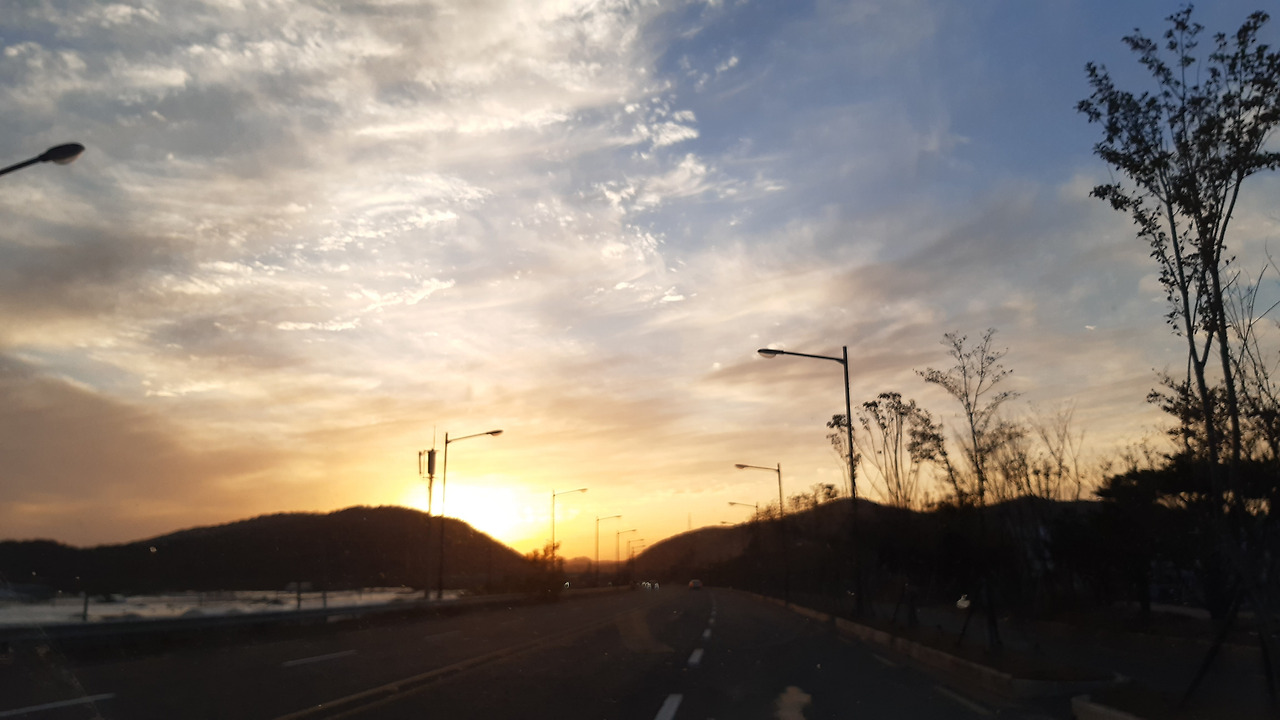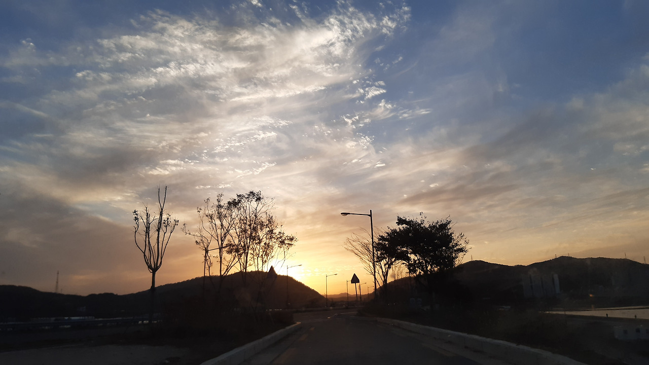 걷기를 마치고 집으로 가는 길. 석양이 아름답다. 아마 내가 그 무렵을 지나고 있어서 더 그렇게 느끼는 것 같다.