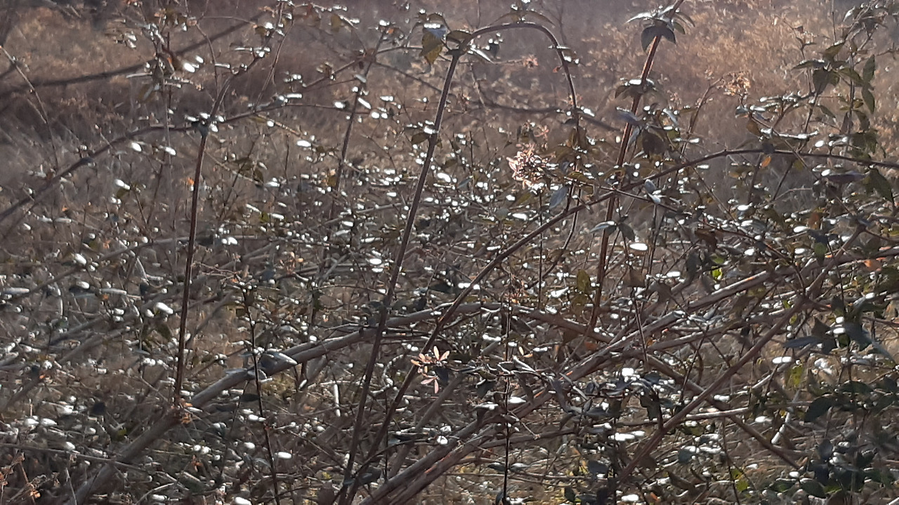 메마른 겨울 풍경이지만 겨울의 귀한 햇살이 아직 남아있는 작은 잎사귀 위에 떨어져 보석처럼, 눈물처럼 빛나고 있다.지금 내 눈에는 눈물 쪽에 가깝다.