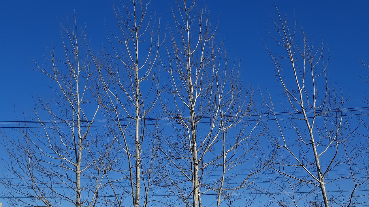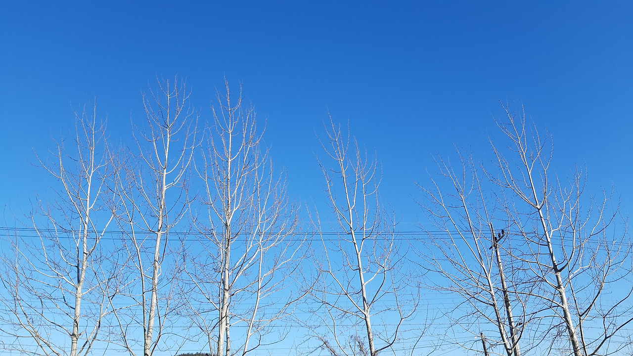 내가 좋아하는 은백양나무가 흰 자태를 완벽하게 드러내며 푸른 하늘을 배경으로 솟아있다. 나목을 강조하기 위해 살짝 어둡게도 찍어봤다.