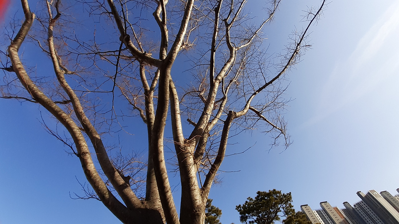 걷다가 하늘을 쳐다보니 인간사 어지러운 것을 아는지 모르는지 하늘은 금간 데 없이 맑고 투명하다.