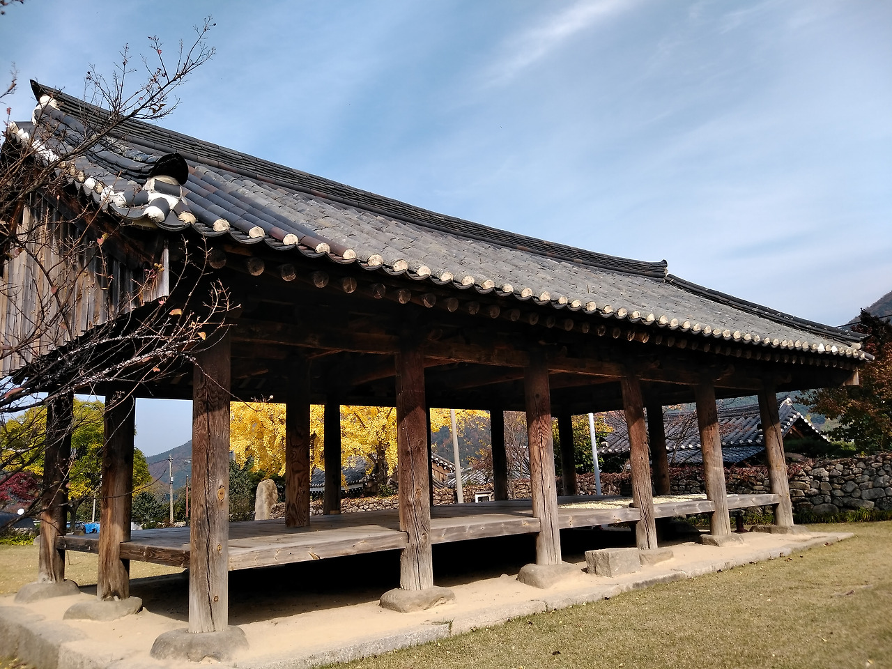 제법 너른 골목길을 올라 왼쪽으로 꺾어지니 바로 유명한 남천고택이다. 빈번한 방문객 때문인지 안으로 잠겨 있다. 그 앞에 서자 나는 고택보다 옆에 있는 대청에 마음을 빼앗겼다. 답답했던 속이 훤히 뚫리는 기분이다.