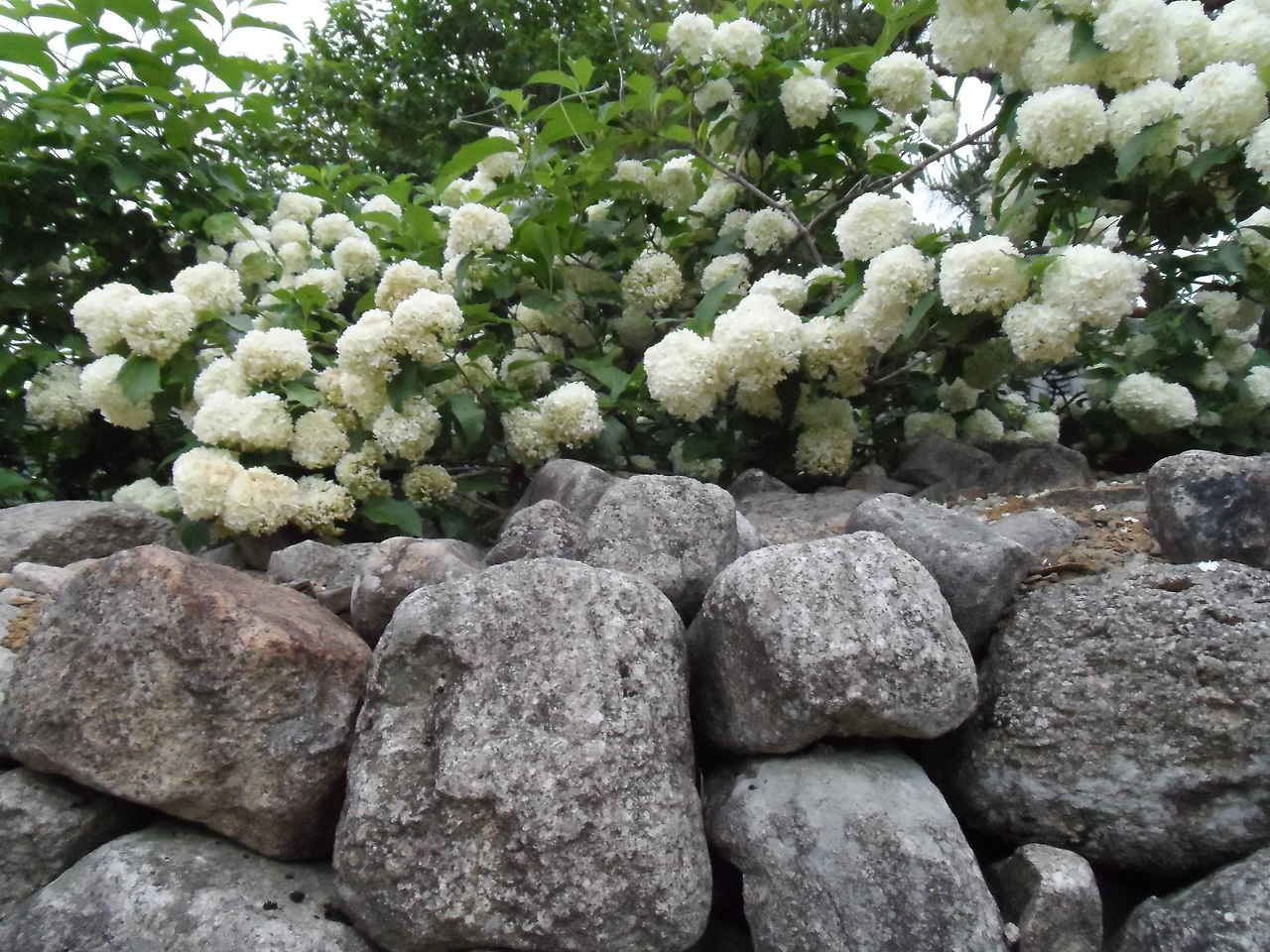 낮은 돌담 안쪽에는 흰 보석들로 한껏 치장을 한 감나무가 다소곳이 서 있다. 껑충 키가 큰 호두나무는 엄지손톱만 한 열매를 수없이 매달고 뽐내듯 그 옆에 나란히 자리 잡았다. 청춘의 두 나무는 서로에게 풍요한 미래를 약속하고 있는 듯 했다. 걸음을 멈추고 올려다보고 있는 나에게 ‘어때, 괜찮은 한 쌍이지?’ 하는 듯했다. 복잡한 마음을 대청에 두고 와서 그런지 이런 상상력이 더해졌다. 나도 모르게 남편과 내가 부부의 인연을 맺을 때 생각이 나서 빙그레 웃음이 나왔다.