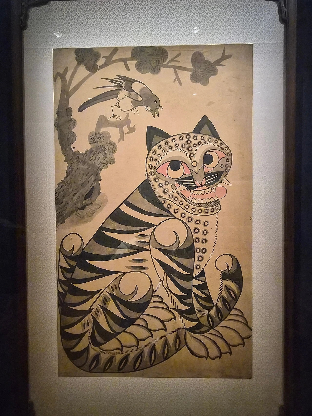 범과 호랑이 무늬를 합쳐 표현한 독특한 형태, 노란 호피 문양, 어딘지 귀여운 표정까지. 조선시대 그림이라고는 믿기 어려울 만큼 트렌디했다.