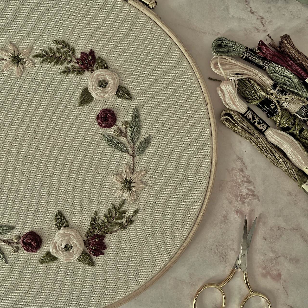 오늘도 빨간 해가 떴다. 빨간 해가 꽃을 비추고, 소담한 우리집 담벼락도 비춘다. 그 담벼락 안에서 거의 완성되어가는 천 위의 꽃도 아침을 받아 피어나고 있다.